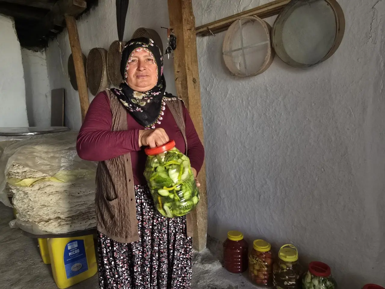 Köyde yaşayan kadın bir aydır kış hazırlıklarıyla meşgul oluyor. Yufka ekmeği, turşu, konserve ve kurutulmuş meyveler hazırlıyor.