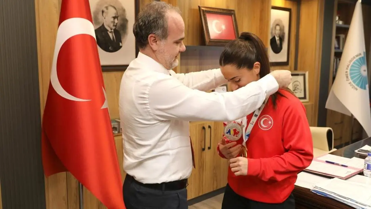 Niğde Ömer Halisdemir Üniversitesi (NÖHÜ) Spor Bilimleri Fakültesi mezunu milli halterciler Aysel ve Cansel Özkan kardeşler, Moldova Kişinev'de düzenlenen Avrupa Halter Şampiyonası'nda elde ettikleri başarılarla gurur kaynağı oldular. Rektör Prof. Dr. Hasan Uslu'yu ziyaret ederek sevinçlerini paylaştılar. Başarılı sporcular, şampiyonada gösterdikleri üstün performansla hem ülkemizi hem de üniversitelerini en iyi şekilde temsil ettiler.