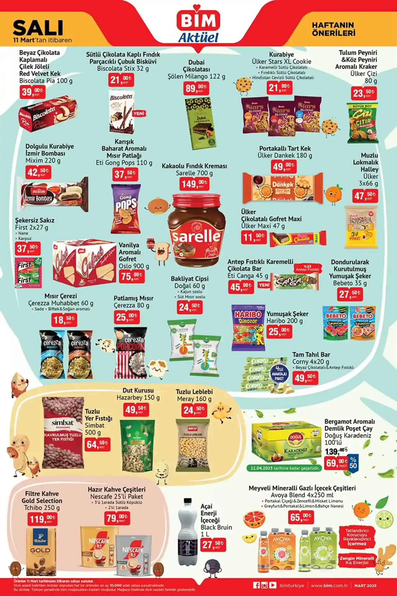 Bim'in 11 Mart 2025 kataloğunda içecek ürünlerinde de büyük fırsatlar bulunuyor. Yumuşak şeker, yer fıstığı şekersiz sakız, çikolatalar, gofretler ve enerji içecekleri indirimli fiyatlarla sunuluyor. Ayrıca, meyveli mineralli gazlı içecek çeşitleri de bu hafta kampanyalı fiyatlarla satışa sunulacak.Şarküteri Ürünleri ve Diğer Fırsatlar