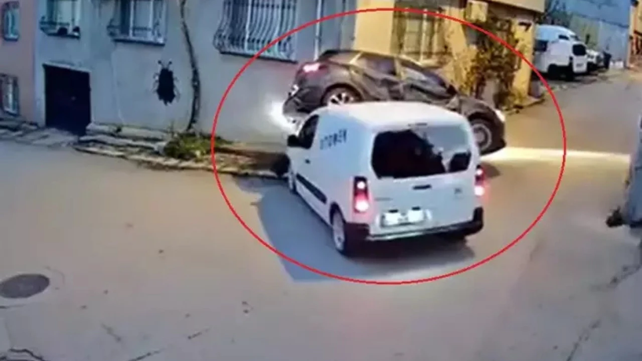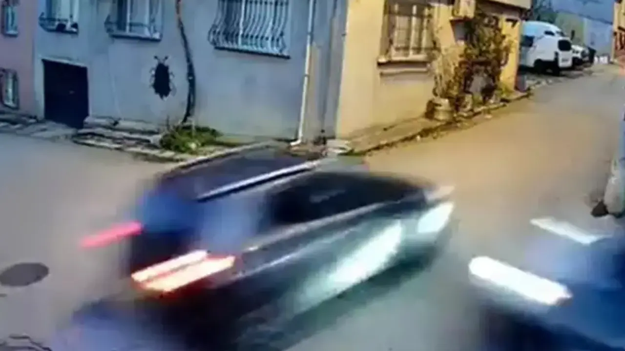 Kaza anı, çevrede bulunan bir evin güvenlik kamerası tarafından kaydedildi. Görüntülerde, sokakta hızla ilerleyen otomobilin, yan sokaktan çıkan hafif ticari araçla çarpıştığı ve savrularak bir binaya çarptığı görüldü. Ardından otomobil, ticari aracın üzerine çıktı ve asılı halde kaldı.