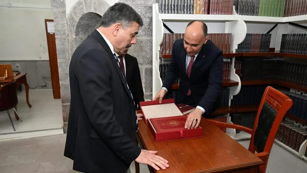 Erzurum Valisi Mustafa Çiftçi, Erzurum Yazma Eser Kütüphanesi Müdürlüğü'nü ziyaret ederek kütüphanenin değerli koleksiyonu ve sunduğu hizmetler hakkında detaylı bir brifing aldı. Kütüphanenin zengin içeriğine hayran kalan Vali Çiftçi, özellikle koleksiyonda öne çıkan nadide eserleri yakından inceleme fırsatı buldu. Bu ziyaret, Erzurum'un kültürel mirasının korunması ve gelecek nesillere aktarılması konusundaki hassasiyeti bir kez daha gözler önüne serdi.