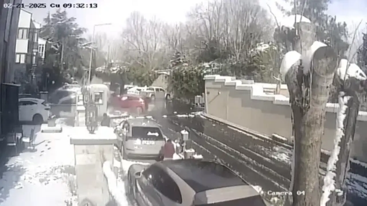 Kaza anı, çevredeki güvenlik kameralarına saniye saniye yansıdı. Görüntülerde, sürücünün direksiyon hakimiyetini kaybetmesi, cipin park halindeki araçlara ve son olarak yayaya çarptığı anlar yer alıyor. Kazada şans eseri, o sırada sokakta babasıyla kar topu oynayan bir çocuk ise yaralanmaktan son anda kurtuldu.