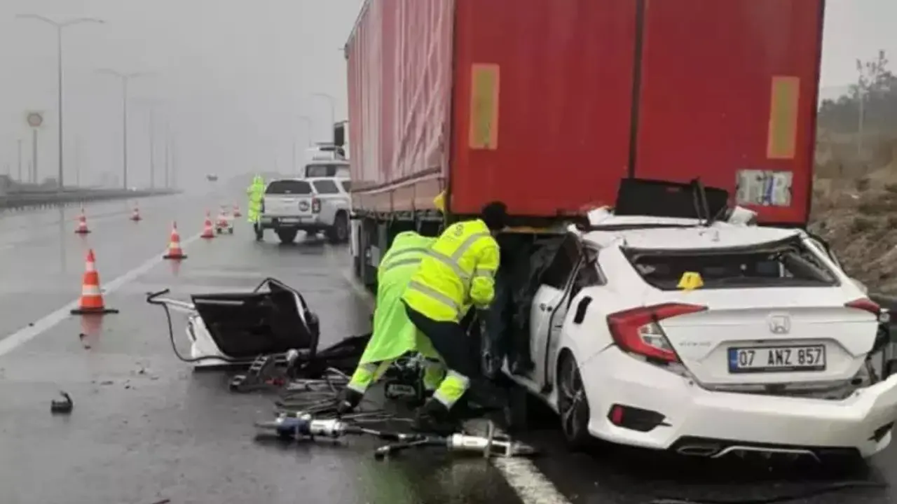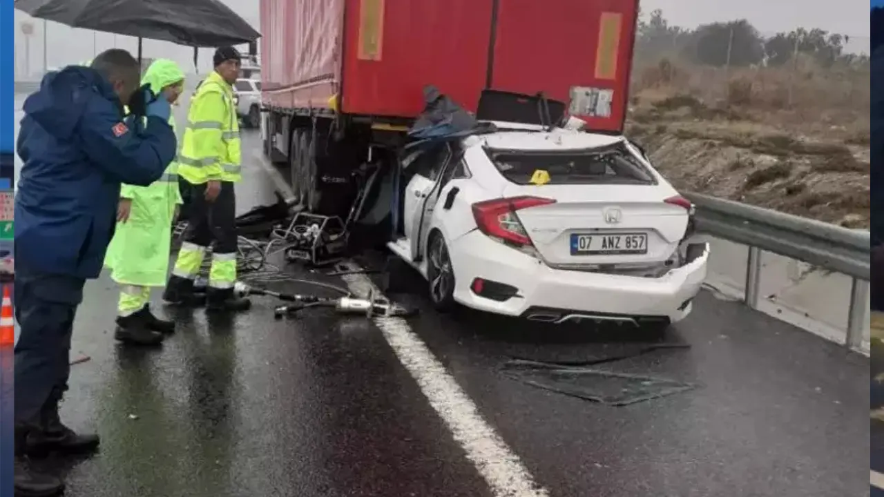 Kontrolden çıkan otomobil, emniyet şeridinde park halinde bulunan 18 ADD 197 plakalı TIR’a arkadan çarptı. TIR, Ahmet Yiğit’in yönetiminde park halindeydi. Çarpışmanın etkisiyle otomobil, TIR dorsesinin altına sıkıştı.