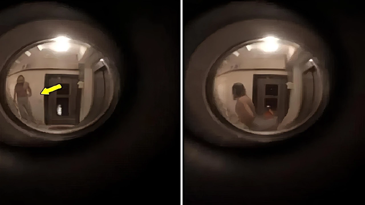 Çözüm arayışında, kapı dürbününe küçük bir güvenlik kamerası taktırmayı düşünen alt komşu, bu sayede üst komşusunun kim olduğunu ve ne zaman kapıyı çaldığını net bir şekilde kaydedebileceğini düşündü. Kapı dürbününe entegre edilen kamera, kısa süre içinde ilginç ve bir o kadar da korkunç görüntüler ortaya koydu. Üst komşusunun, her gün defalarca kapıyı çalıp hızla kaçtığı anlar, kameralar tarafından kaydedildi.