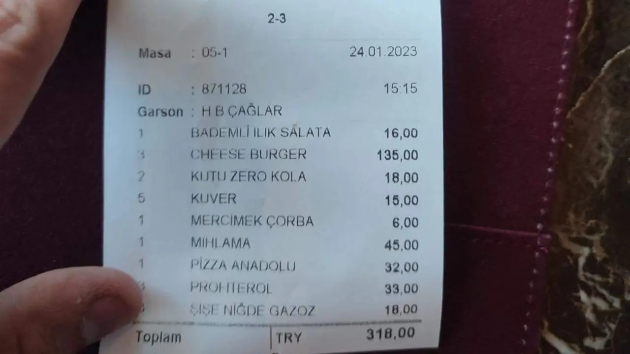 Meclis Lokantası'nda, yemeklerin dışında 8 kişilik grup için toplamda 48 lira ekstra ücret alındı. Bu ücret, garson hizmeti (kuver) adı altında, kişi başı 6 lira olarak hesaplandı.