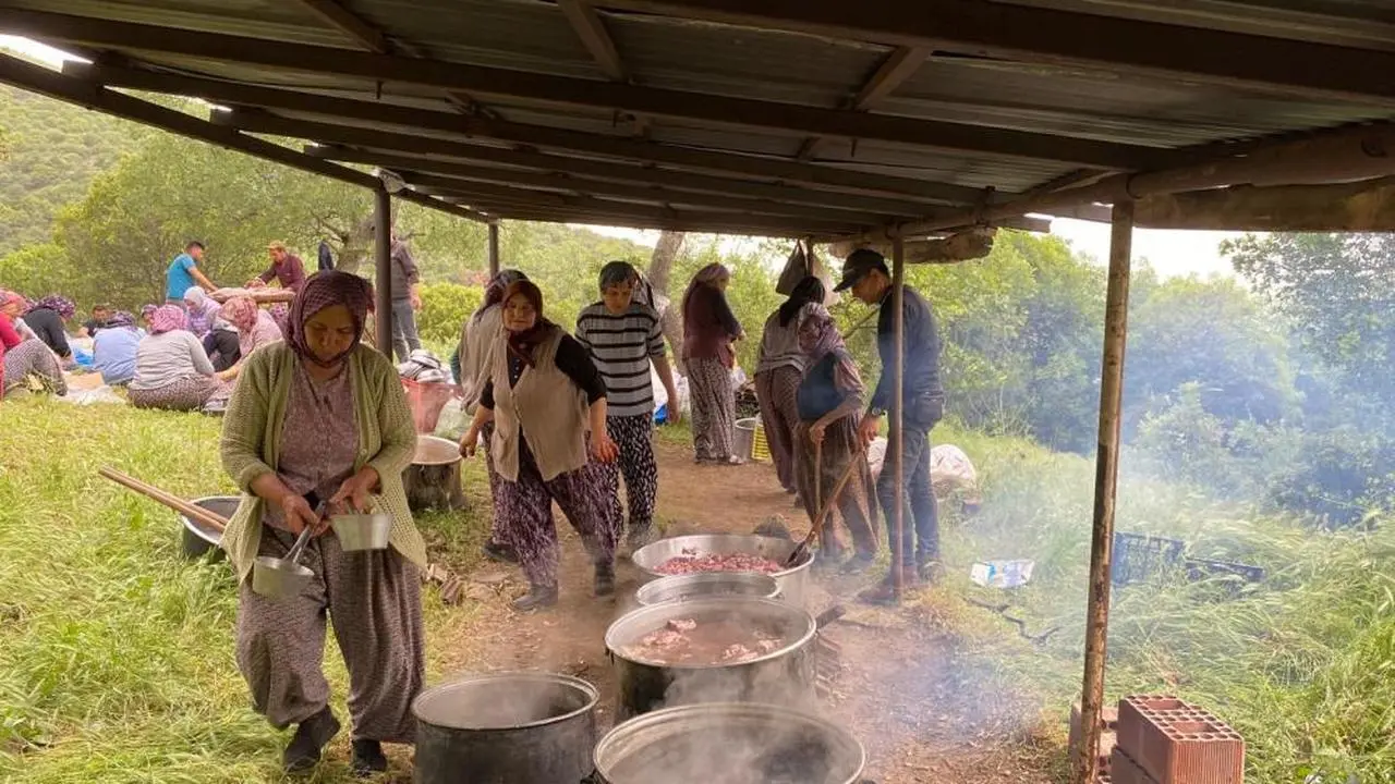 Kurban edilen hayvanlar, kadın ve erkeklerin ortak çalışmasıyla doğranarak, kemikli et ve kavurma şeklinde onlarca kazanda pişirildi. Bu hazırlıklar, geleneğin önemli bir parçasını oluşturuyor ve katılımcıların dayanışma ruhunu pekiştiriyor. Yemekler, öğle namazı vaktine kadar hazır hale getirildi.