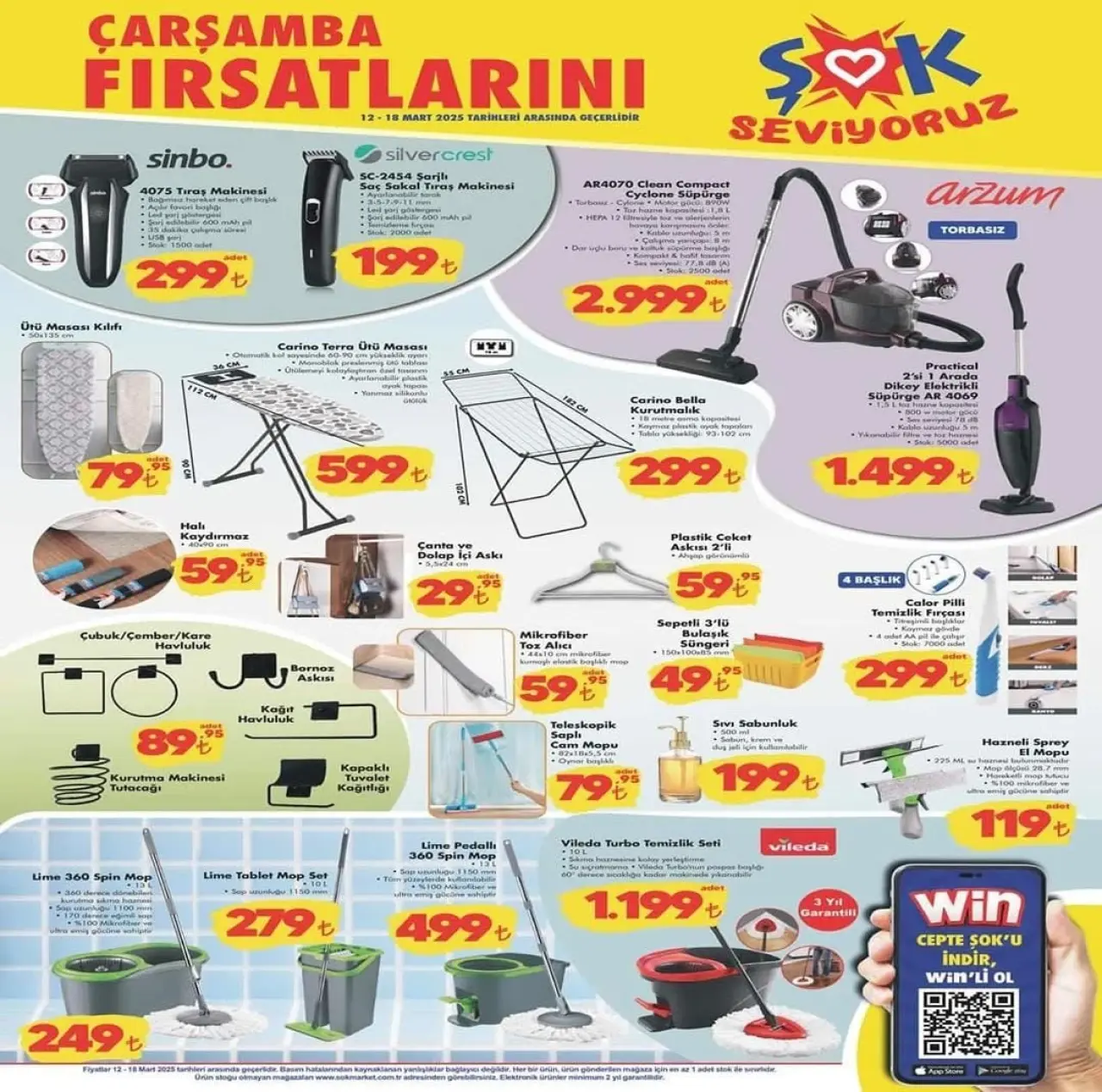 ŞOK'un 12 Mart Aktüel Kataloğu, evdeki düzeni sağlamak ve temizlik işlerini kolaylaştırmak isteyenler için geniş bir ürün yelpazesi sunuyor. Elektronik ürünlerden ev eşyalarına kadar pek çok fırsat, uygun fiyatlarla satışa sunulacak. Bu fırsatları kaçırmamak için ŞOK markete uğrayarak, ihtiyacınız olan ürünleri almak için hazırlığınızı yapabilirsiniz.