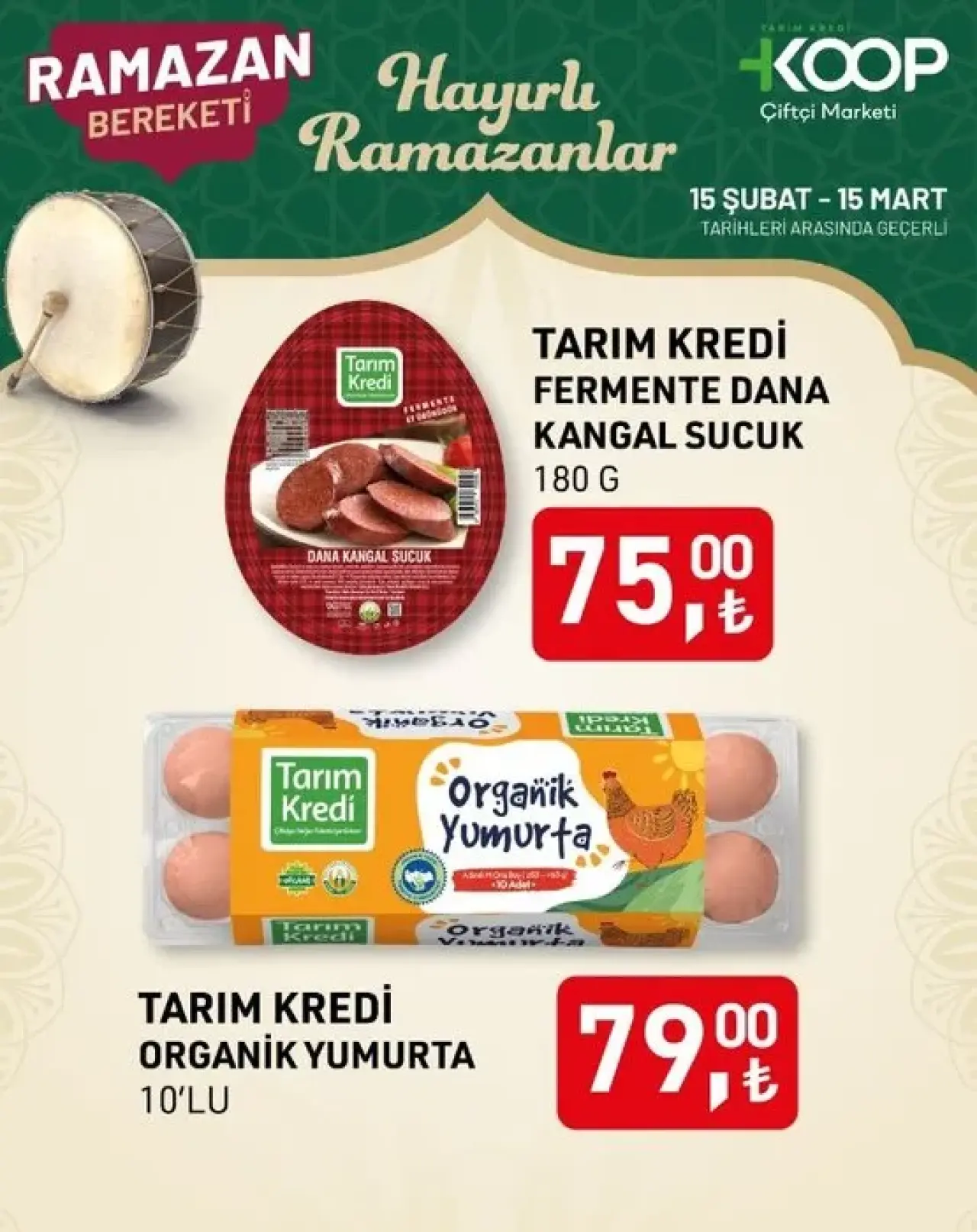 Ramazan ayı boyunca tercih edilen gıda ürünleri de Tarım Kredi aktüel kataloğunda yerini alıyor. Dana kangal sucuk, peynir çeşitleri ve tuzlu tereyağı gibi ürünler, sofra şıklığını tamamlayacak. İşte gıda kategorisindeki fırsatlar: