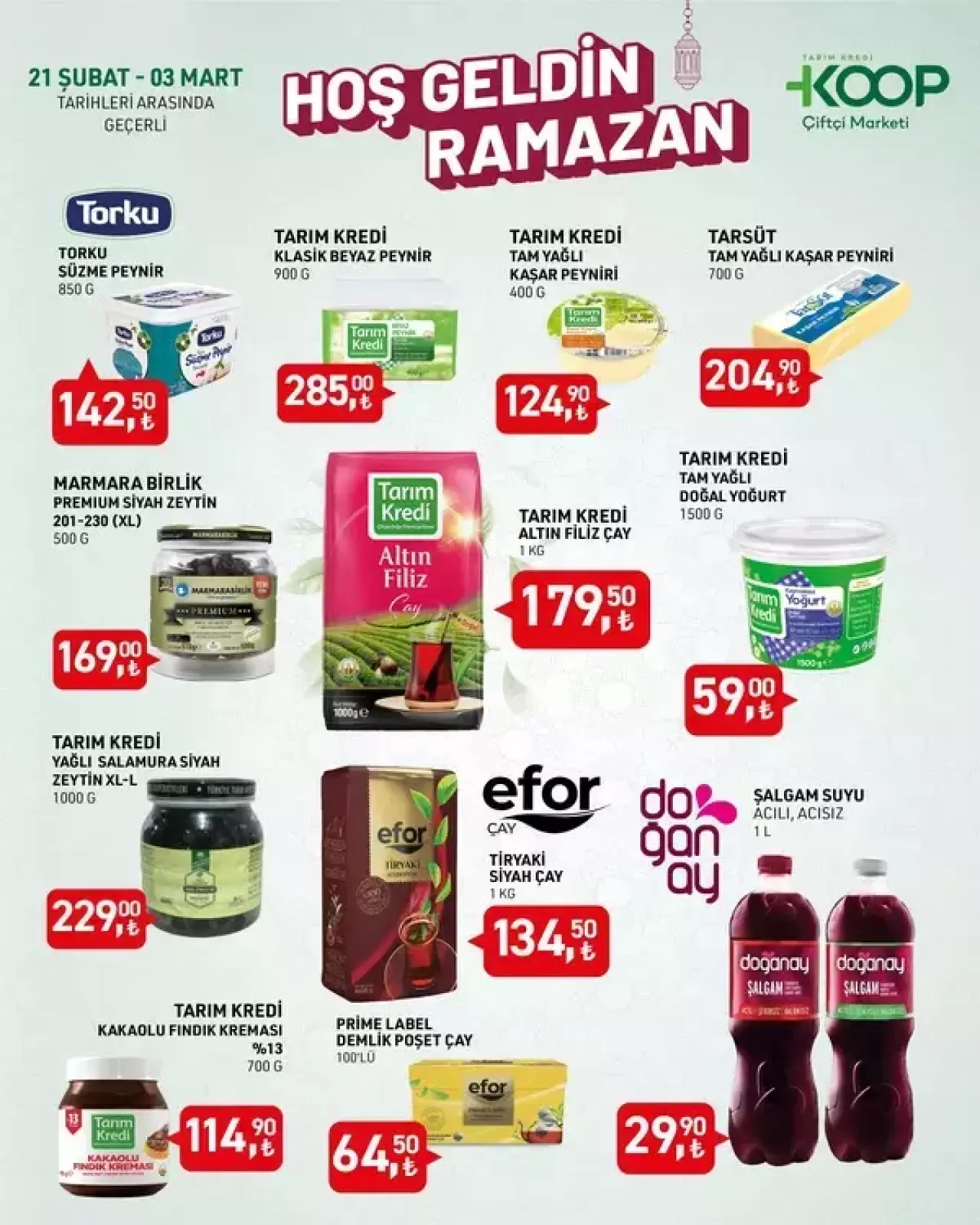 Tarım Kredi Kooperatif Market'in aktüel kataloğunda yer alan bazı indirimli ürünler ve fiyatları şu şekilde: