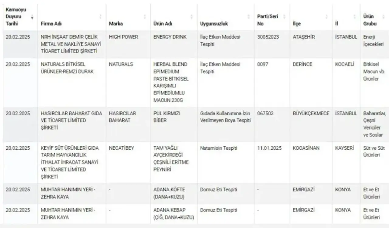 Bu skandal, sadece domuz etiyle sınırlı kalmadı. Yapılan diğer denetimlerde, bitkisel macun ve enerji içeceği gibi ürünlerde de yasaklı ilaç etken maddeleri tespit edildi. Ayrıca, bazı baharatlarda yabancı maddeler, çayda gıda boyası, sucukta kanatlı eti ve köftede sakatat gibi sağlık için tehlikeli içerikler bulundu. Bakanlık, bu ürünlerin satışını derhal durdurdu ve halkı bu tür ürünlerden uzak durmaya çağırdı.