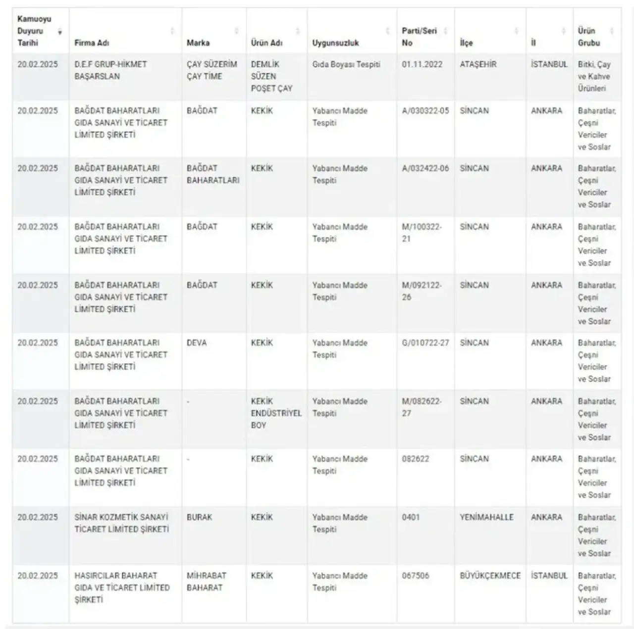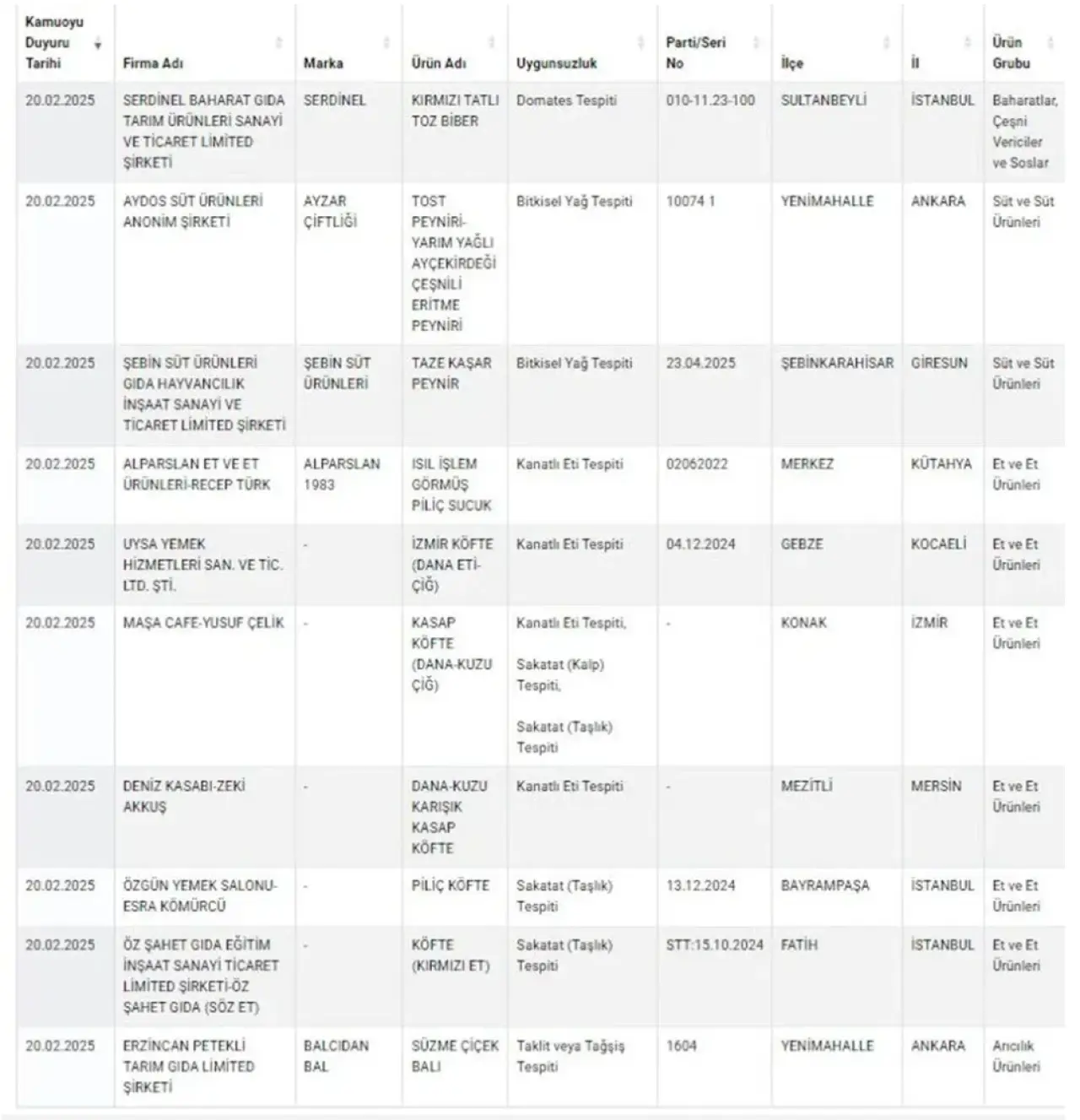 Taklit ve tağşiş yapılan ürünlerin yanı sıra, gıda güvenliği alanındaki denetimler de artırıldı. Bakanlık, gıda üretim ve satışı yapan işletmelerin daha sıkı bir şekilde denetleneceğini ve ilgili ürünlerin mevzuata aykırı olanlarının satışının yasaklanacağını duyurdu. Yapılan denetimlerde, gıda güvenliği açısından ciddi tehditler oluşturan 6 yeni ürün daha tespit edilerek listeye eklendi.