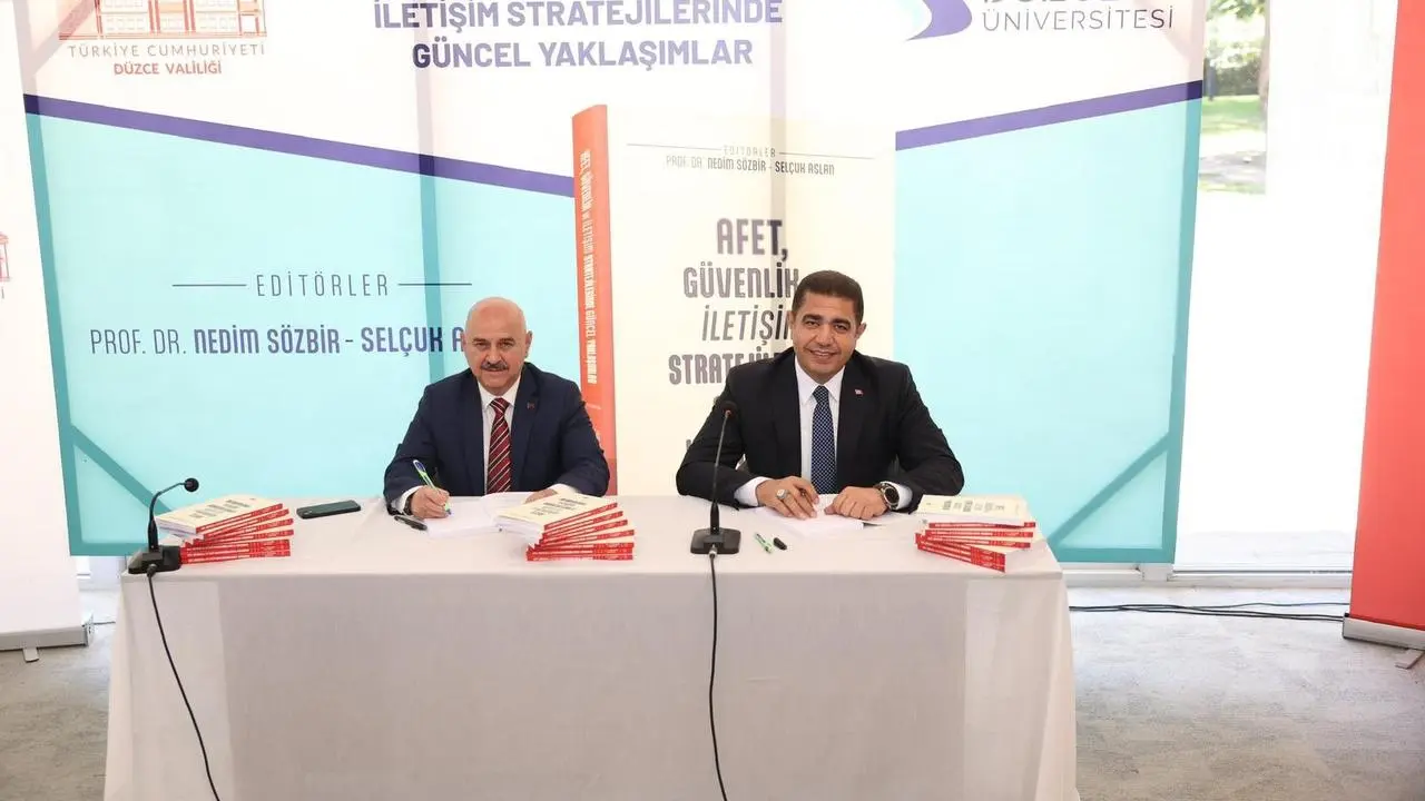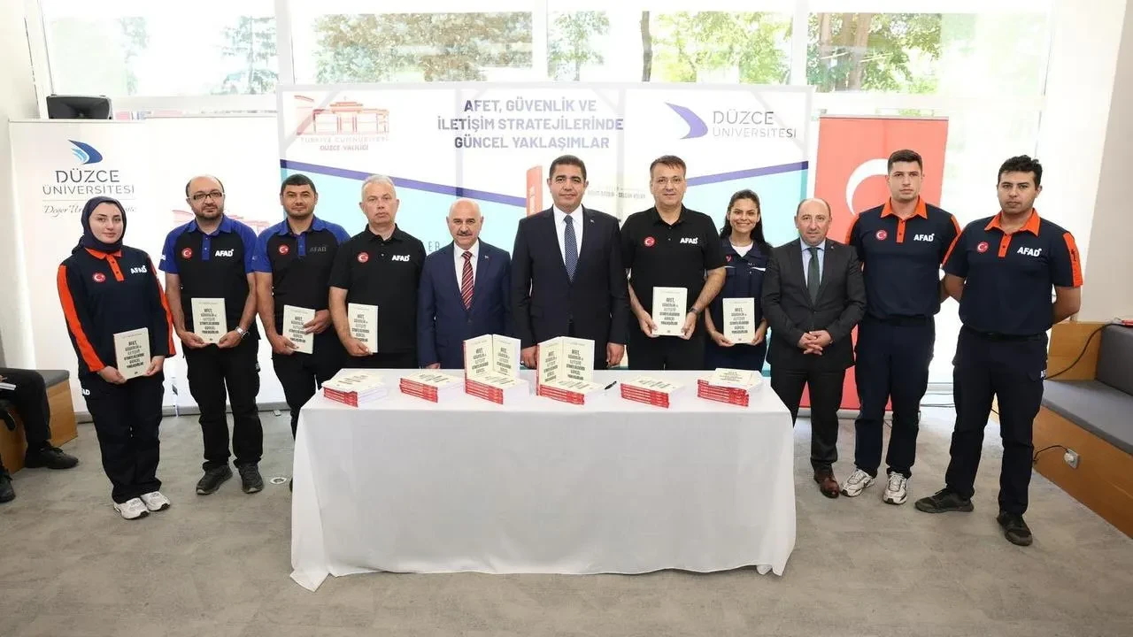 Düzce Valiliği himayesinde gerçekleştirilen sempozyumun somut çıktısı olarak kitap hazırlandı. Afet, güvenlik ve iletişim stratejilerine odaklanan eser tanıtıldı.