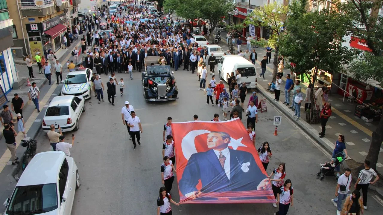 Metrelerce uzunluktaki Türk bayrağı gençler tarafından taşındı. Yavuz Selim Meydanı'nda protokol üyeleri Atatürk anıtına çelenk sundu.