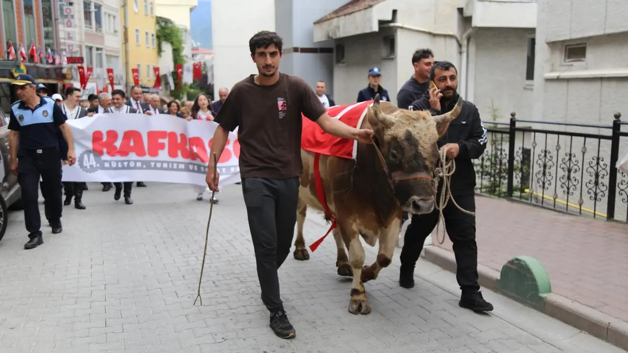 Artvin'de geleneksel Kafkasör Festivali'nin 44'üncüsü, boğa güreşleri ve kortej yürüyüşüyle coşkulu bir şekilde başladı.