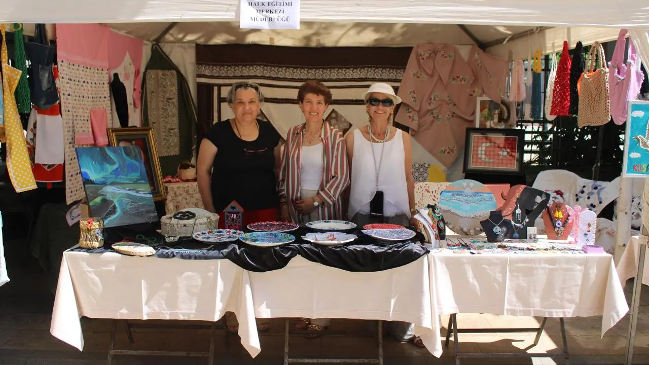 Aydın'da Hayat Boyu Öğrenme Haftası kapsamında düzenlenen şenlikte, kursiyerler el emeği ürünlerini sergileme fırsatı buldu.