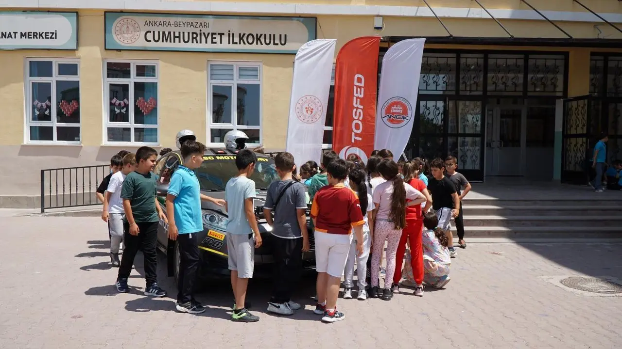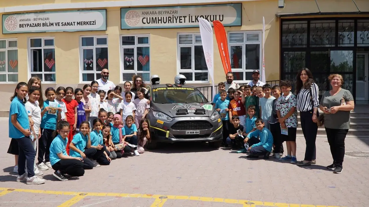 Beypazarı ilçesindeki Hitit Rallisi öncesinde ralli pilotları, öğrencilerle buluşarak motor sporları hakkında bilgi paylaşımında bulundu.