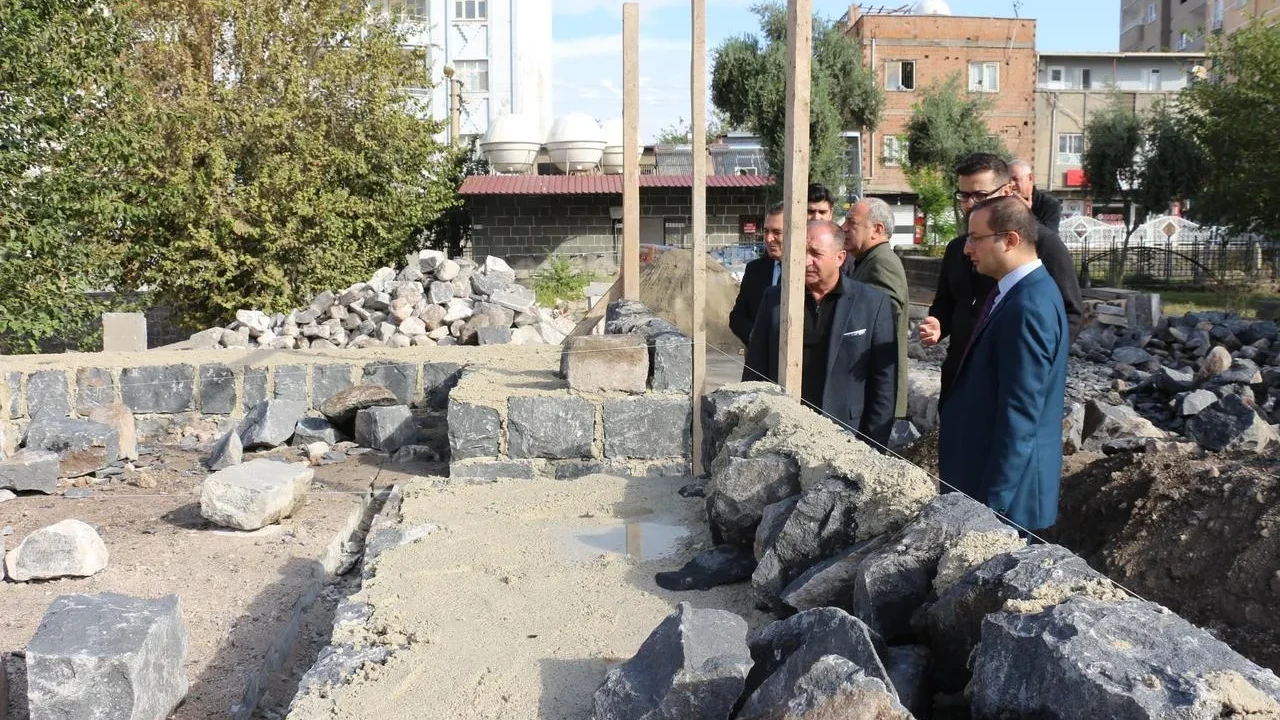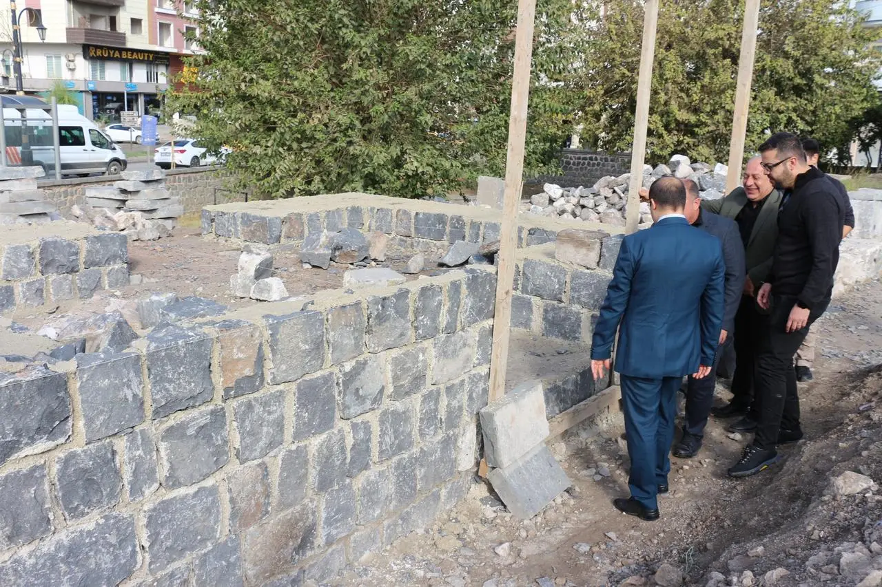 Cizre'deki Abdaliye Medresesi'nin yıkılan tarihi duvarı, aslına uygun şekilde yeniden inşa ediliyor.