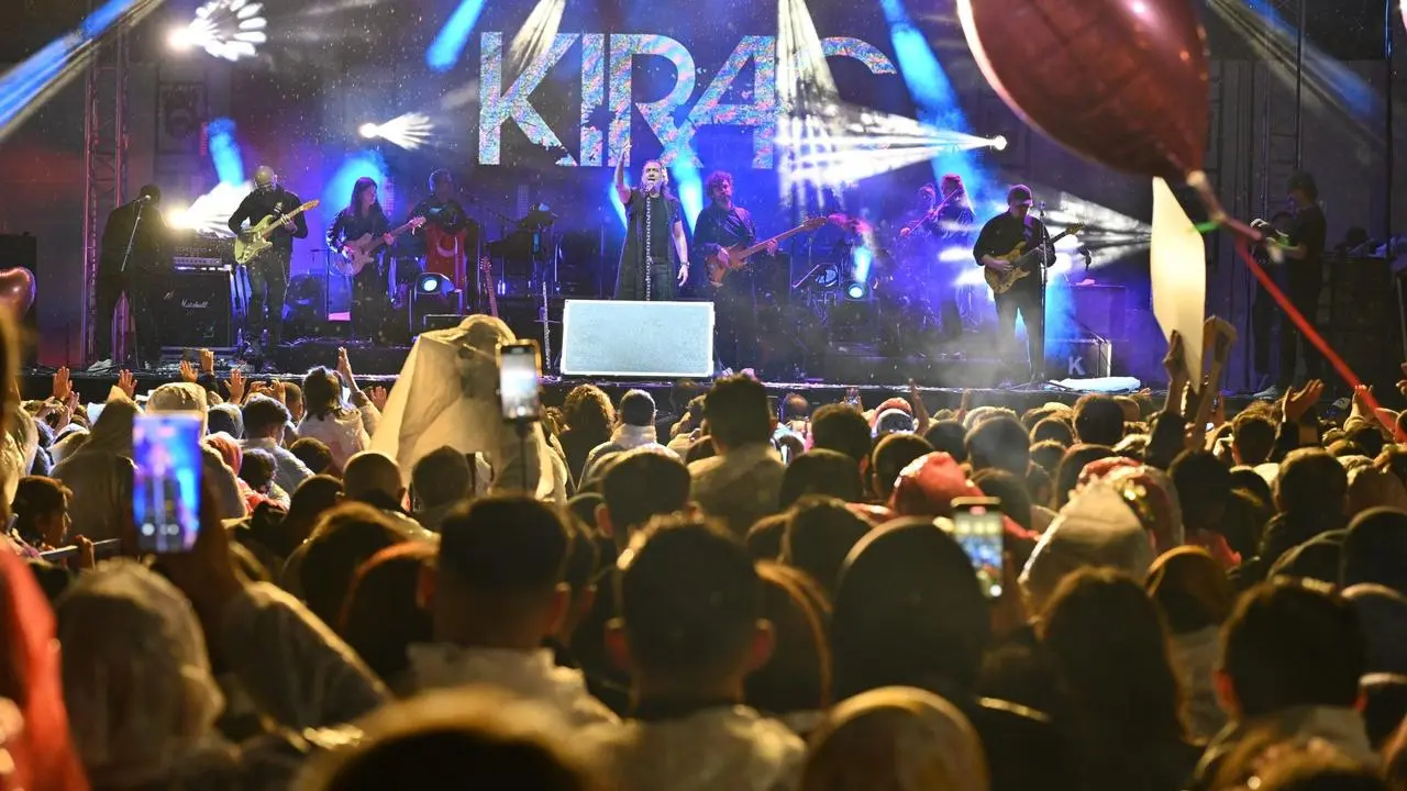 Binlerce Kıraç hayranı sağanak yağmura aldırış etmedi. Vatandaşlar cep telefonu ışıklarıyla şarkılara eşlik etti.