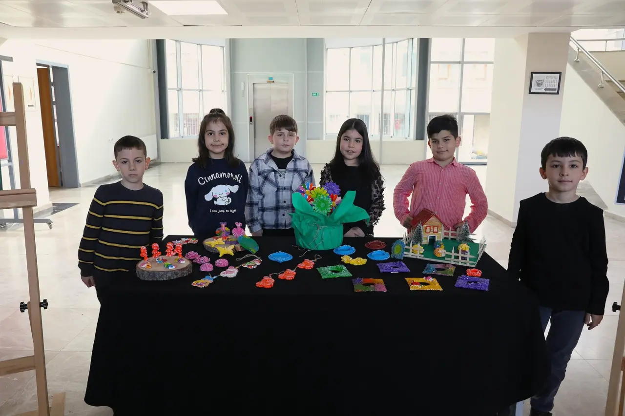 Yunus Emre Kültür Merkezi'nde açılan sergide el sanatları ve tasarım çalışmaları yer aldı. Öğrencilerin keçe, ebru ve üç boyutlu eserleri büyük ilgi gördü.