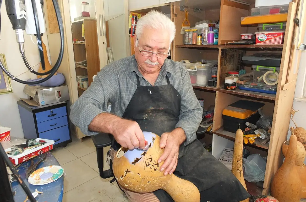 75 yaşındaki Ertan, yıllar önce aldığı hat eğitimini su kabağına uygulayarak eşsiz eserler ortaya çıkarıyor. Tekniği öğrenmek isteyenlere de kurs vererek bu sanatı yaşatmayı hedefliyor.
