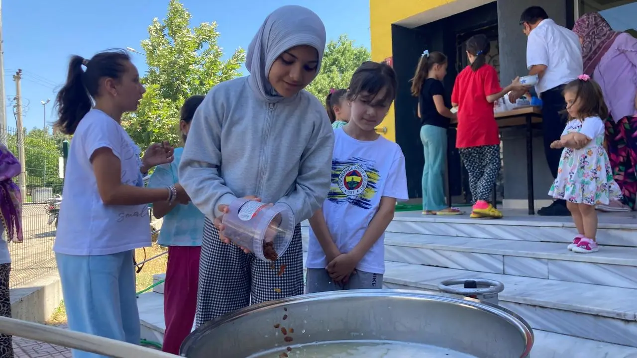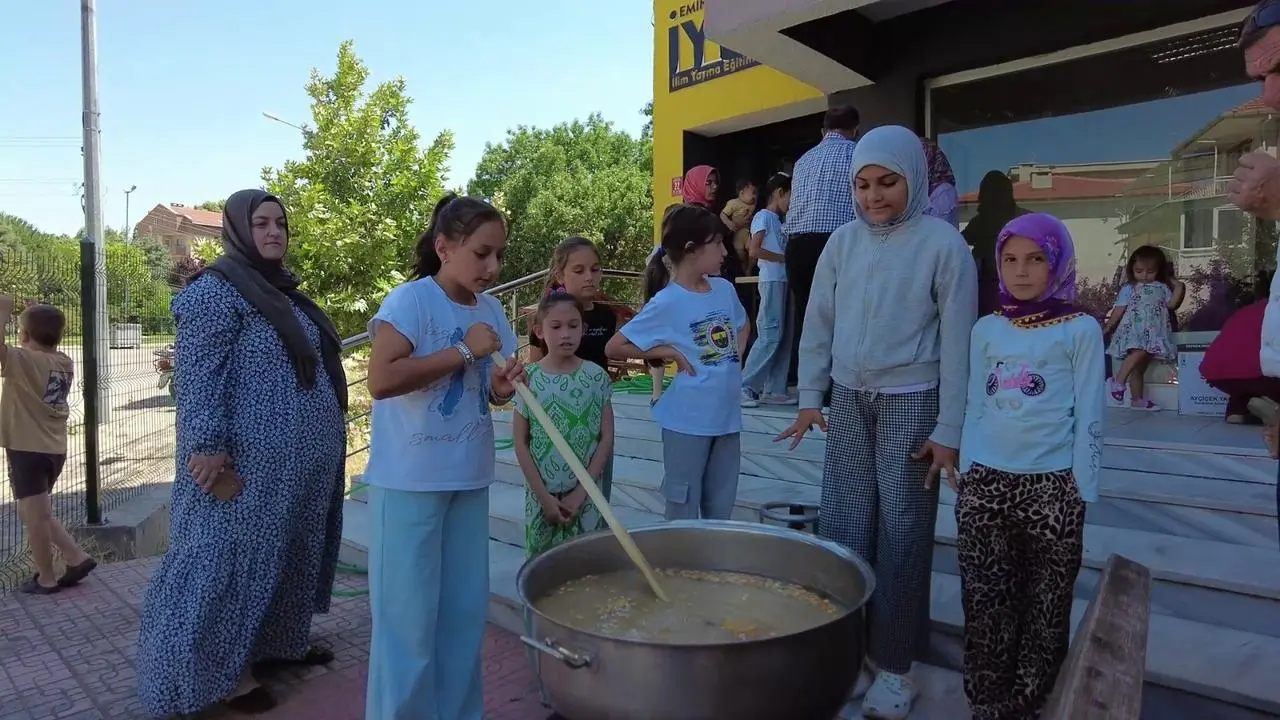 Balıkesir'in Sındırgı ilçesinde İlim Yayma Cemiyeti öğrencileri, Muharrem ayı dolayısıyla geleneksel aşure etkinliği düzenledi.