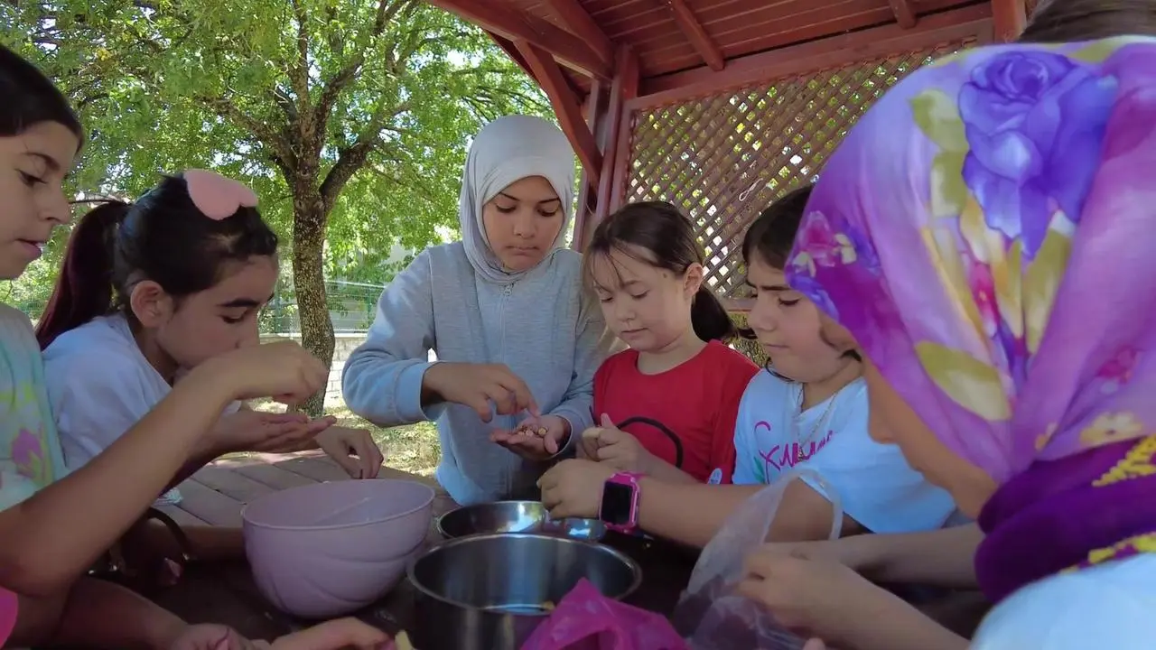 Marifet Okulu öğrencileri etkinlik için evlerinden çeşitli malzemeler getirdi. Kuru meyveler ve baklagiller büyük kazanlarda birleştirildi.
