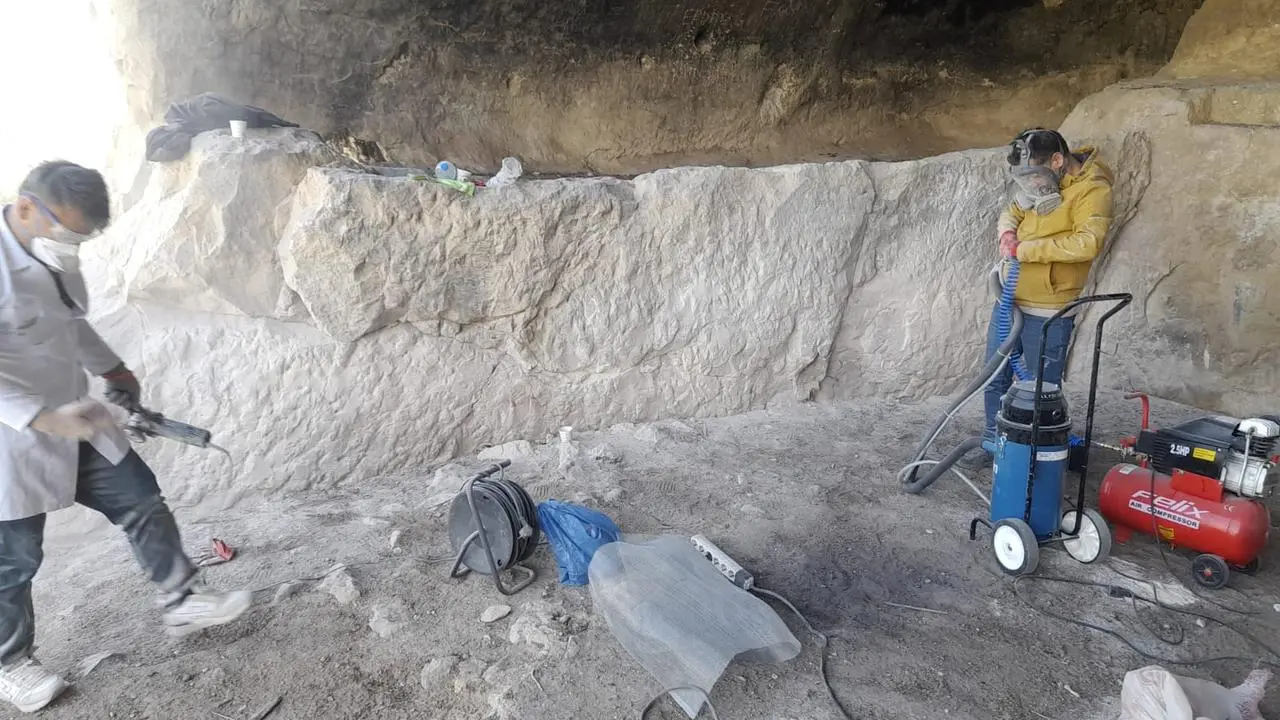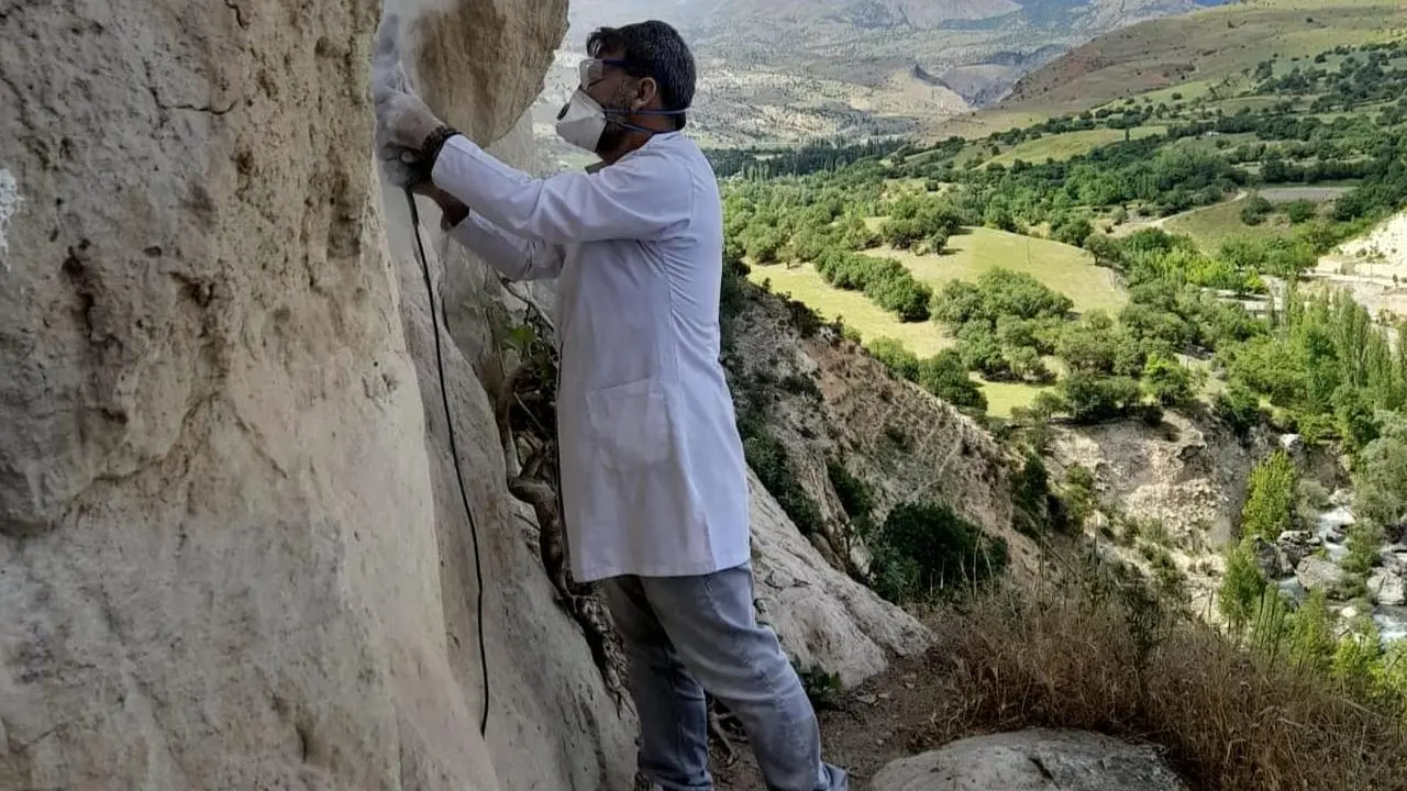 Tunceli'nin Çemişgezek ilçesindeki Urartu mağaralarında mikro kumlama tekniği ile kapsamlı temizlik çalışmaları gerçekleştirildi.