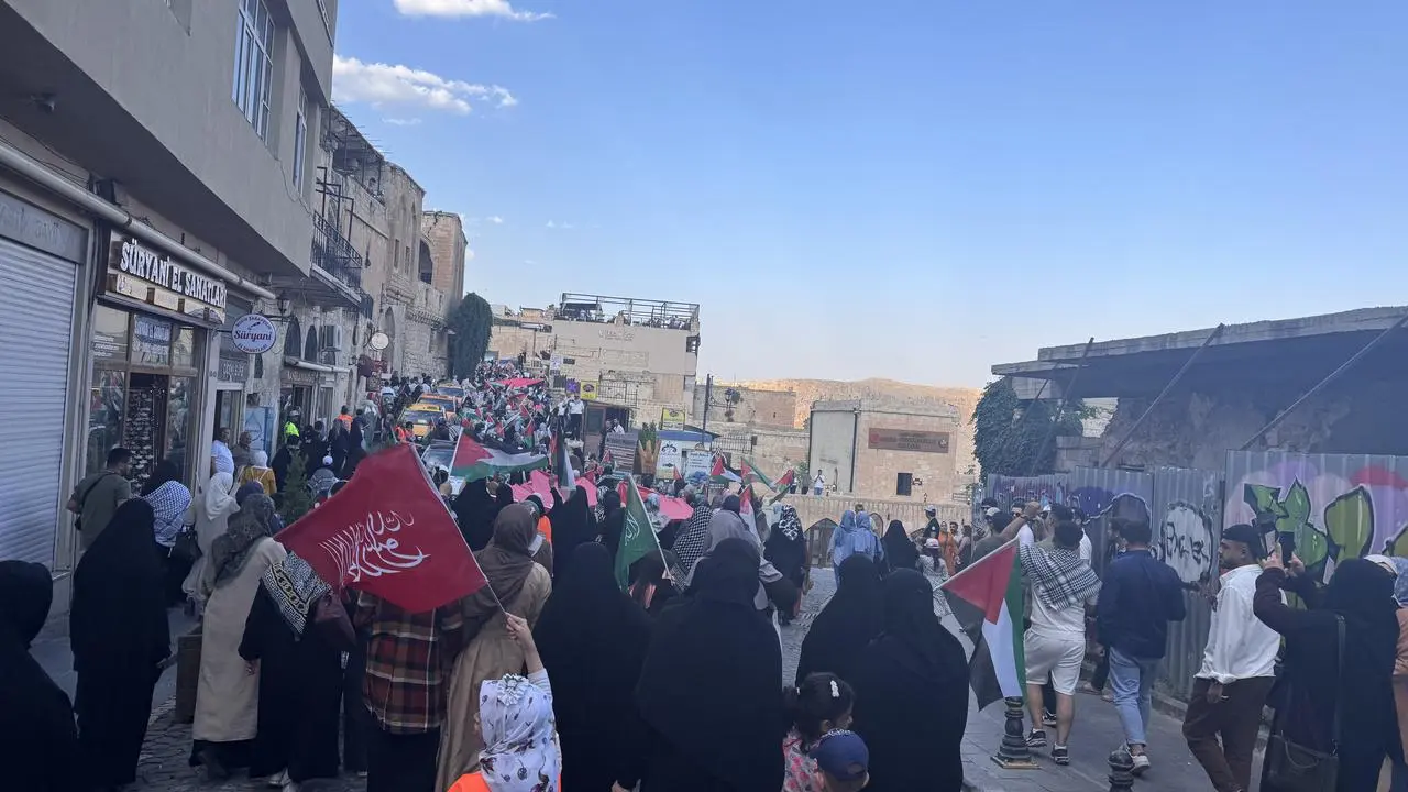 Çalışma ve Sosyal Güvenlik Bakanı Vedat Işıkhan, Mardin'deki Gazze'ye destek yürüyüşünde vatandaşlarla bir araya geldi.