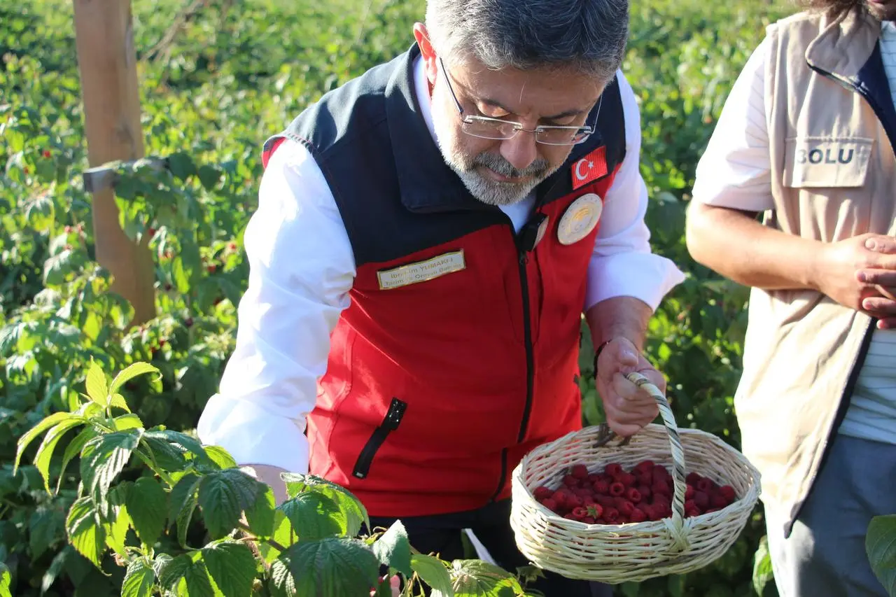 Bakan Yumaklı, Bolu’da ahududu üretimi yapan genç bir çiftçiyi ziyaret etti. Üretim sürecini yerinde inceleyerek bilgi aldı.