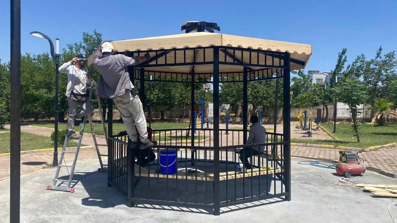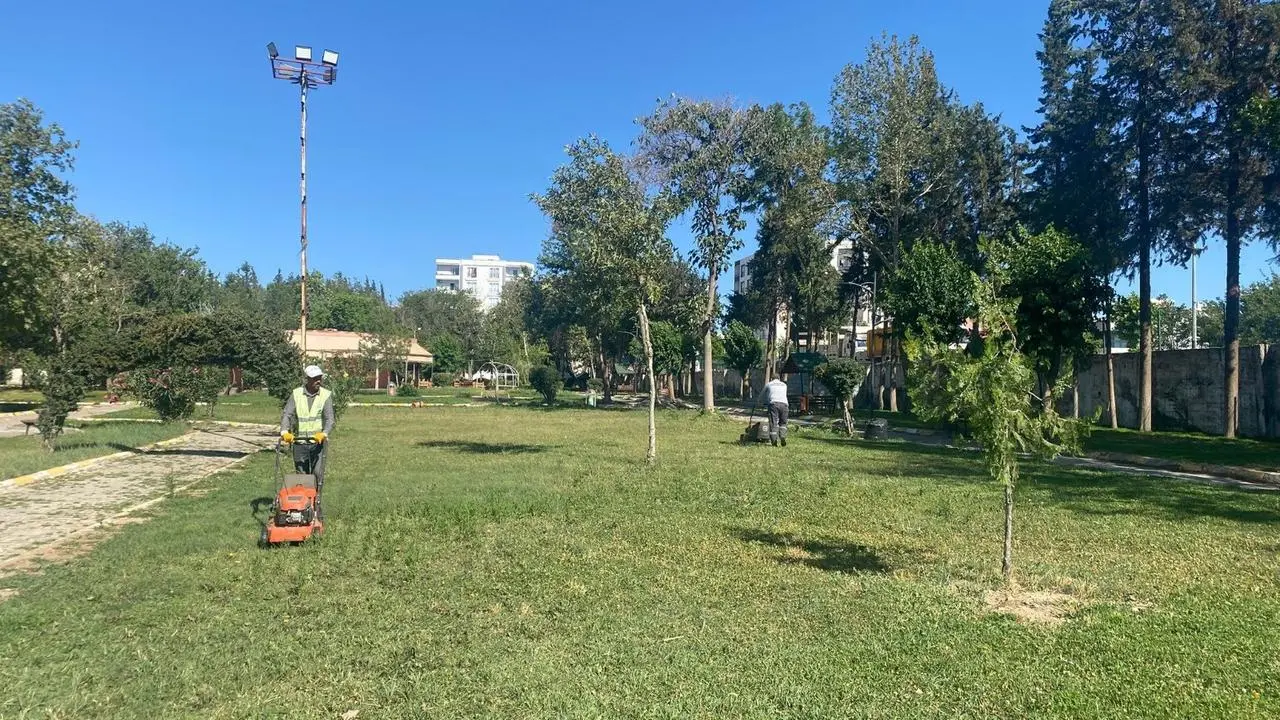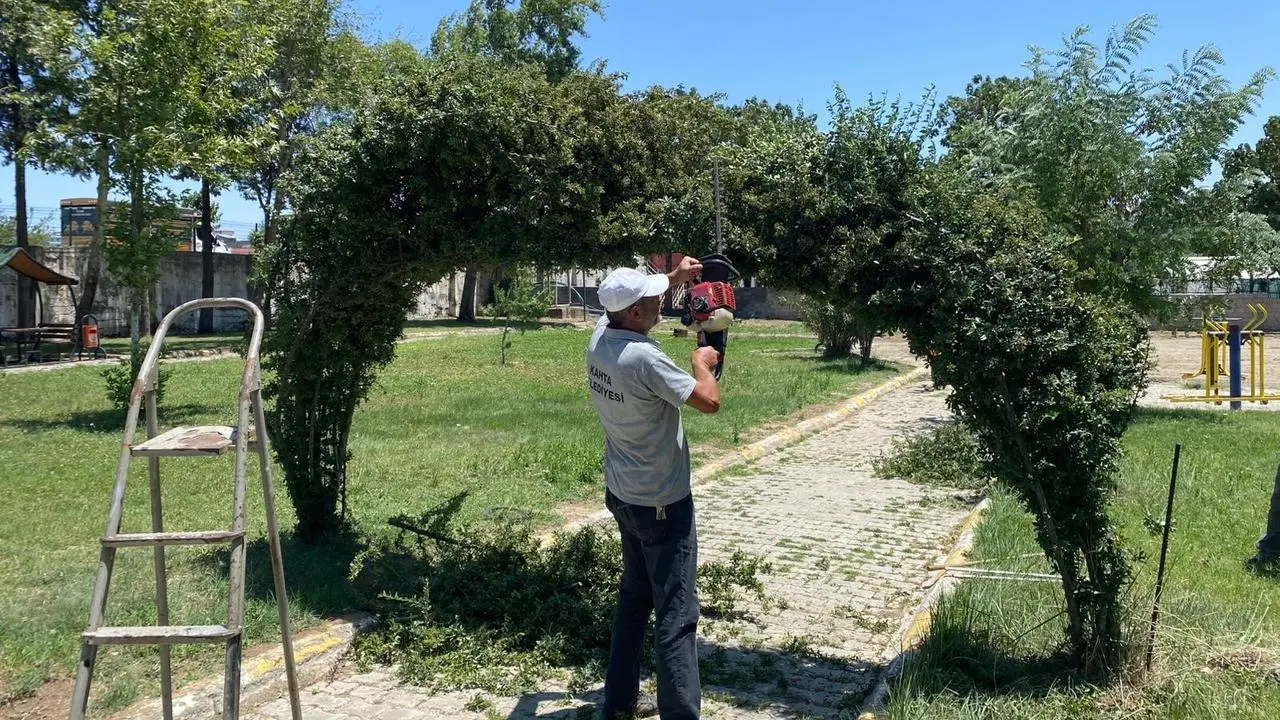 Adıyaman'ın Kahta ilçe Belediyesi, park ve yeşil alanlarda vatandaşların konforlu vakit geçirmesi için bakım çalışmaları yapıyor.