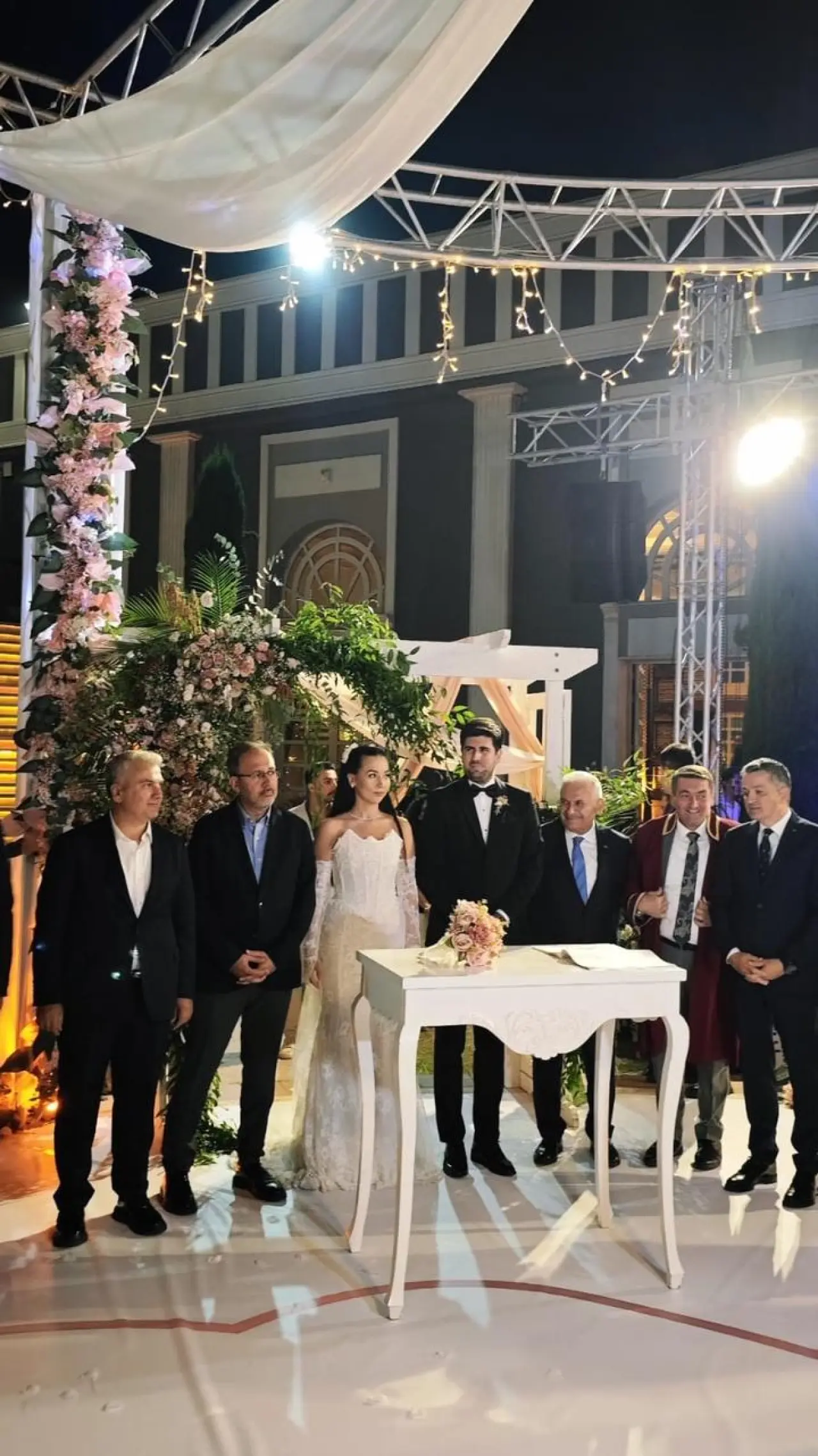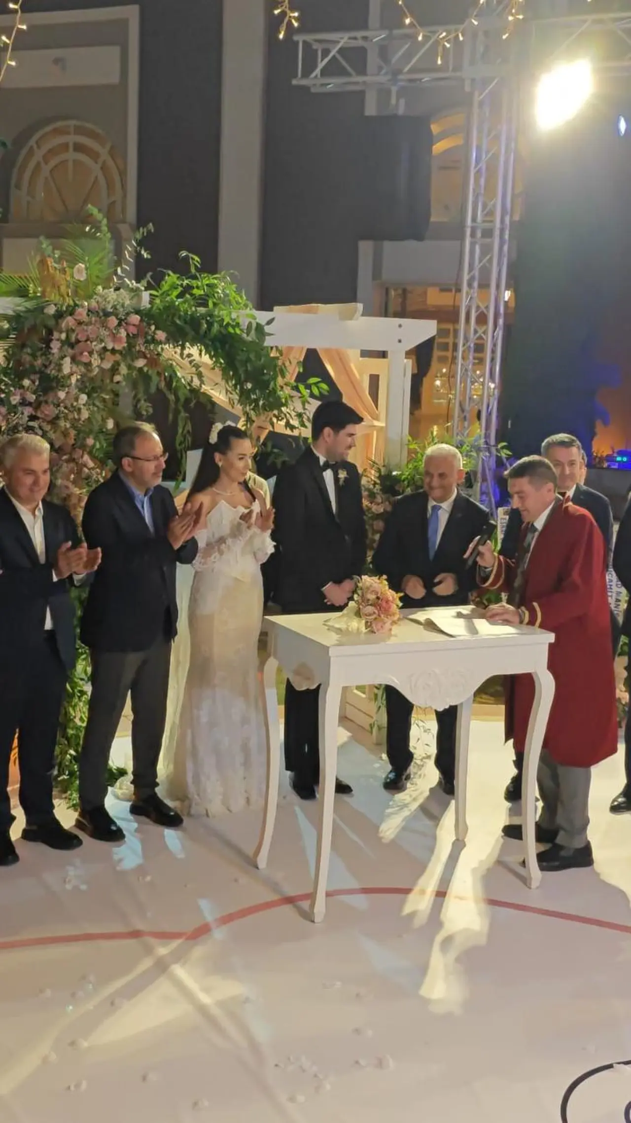 Düğüne eski Başbakan Binali Yıldırım da katıldı. Yıldırım, genç çifte evlilik cüzdanını takdim etti ve mutlu evliliğin sırrını açıkladı.