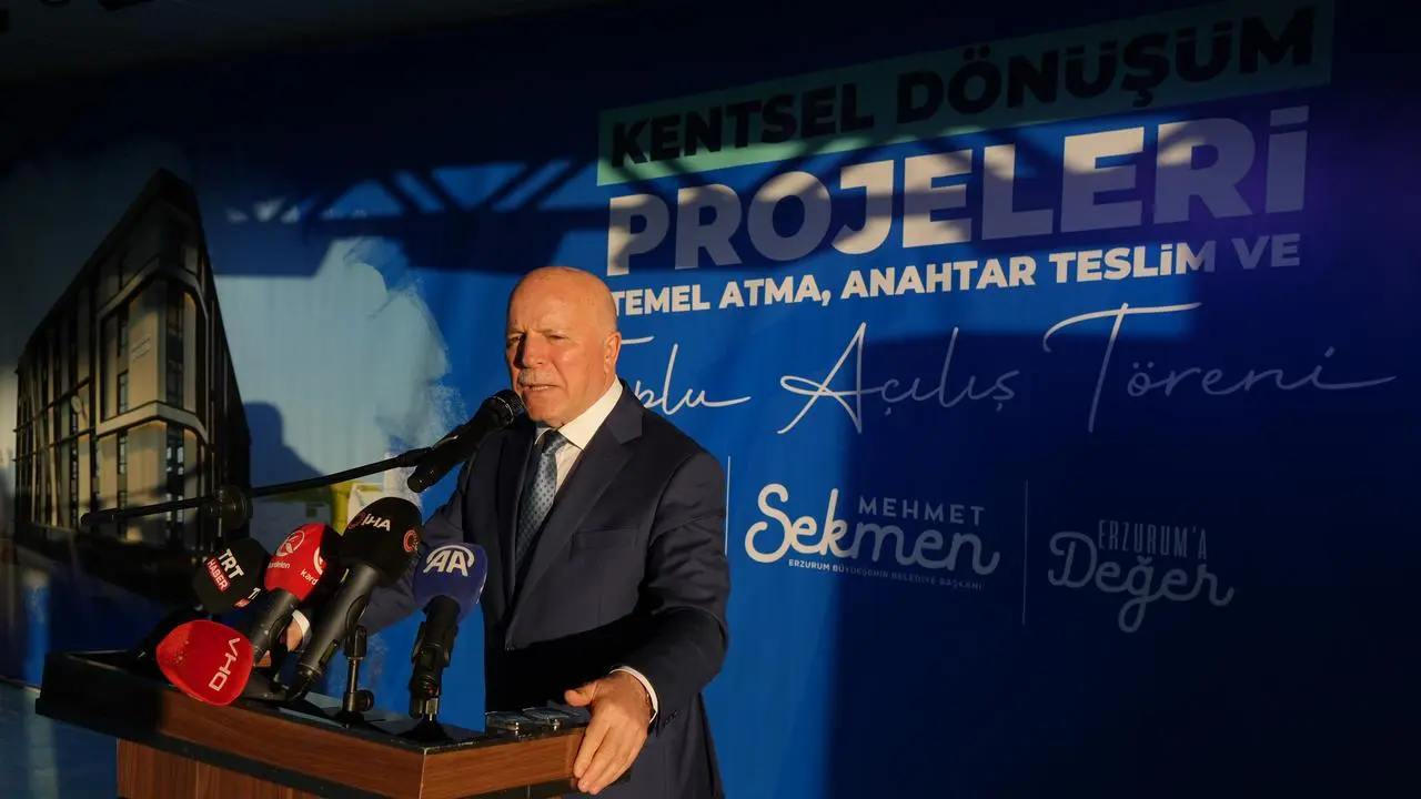 AK Parti Yerel Yönetimlerden Sorumlu Genel Başkan Yardımcısı Mustafa Demir, Erzurum'da kentsel dönüşüm projelerinin açılış törenine katıldı.