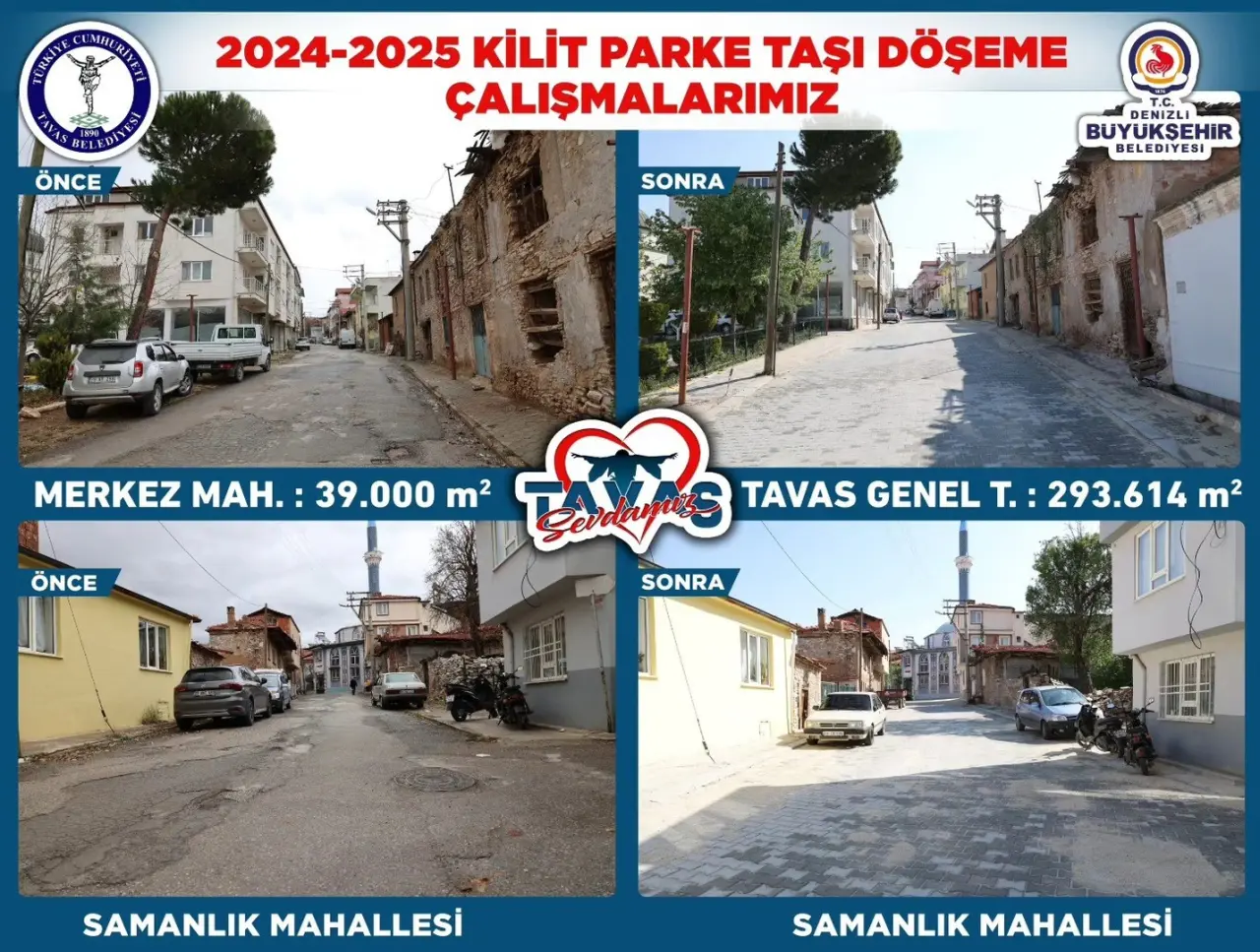 Tavas'ta 2024-2025 yıllarında 293 bin metrekare parke taşı ve 2 bin 300 metre
