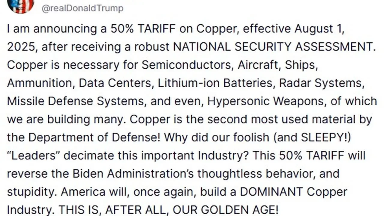 Trump, önceki yönetimi bakır sanayisini zayıflatmakla suçladı. Yeni vergiyle ABD'nin küresel liderliğini geri kazanacağını iddia etti.