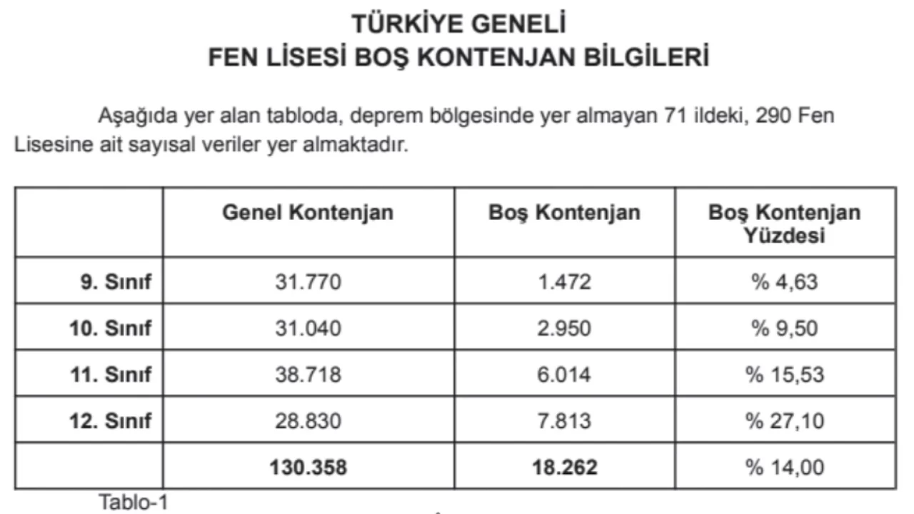 Raporun dikkat çektiği noktalardan biri, yüzde 1’lik dilimde yer alan, Türkiye’nin en iyi fen liselerinden bazılarının bu boş kontenjan sorununu yaşaması oldu. Ölger, bu okullarda eğitim alan öğrencilerin büyük hayallerle başladıkları öğrenim sürecinde hayal kırıklığı yaşadığını belirtti.