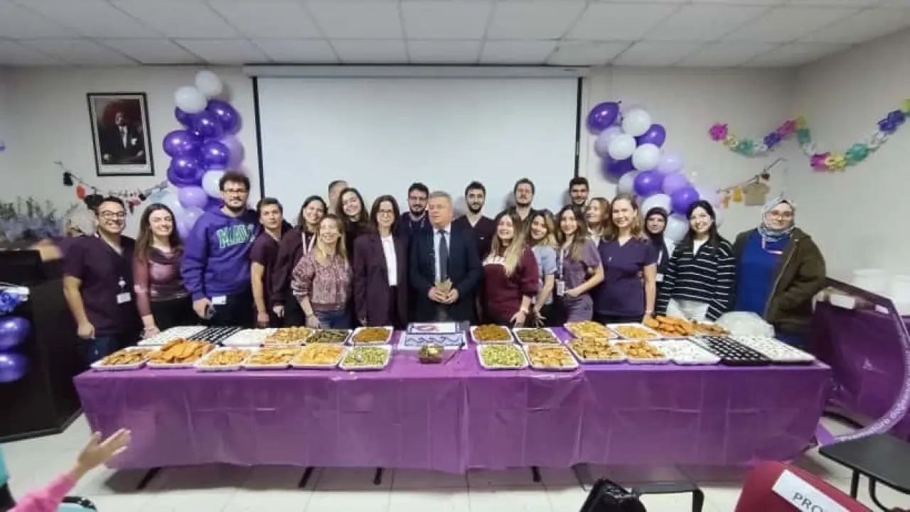 Yenidoğan Yoğun Bakım Ünitesi tarafından düzenlenen etkinlikte, prematüre bebekler ve aileleri bir araya geldi. Mor rengin hakim olduğu programda sunumlar yapıldı ve pasta kesildi.
