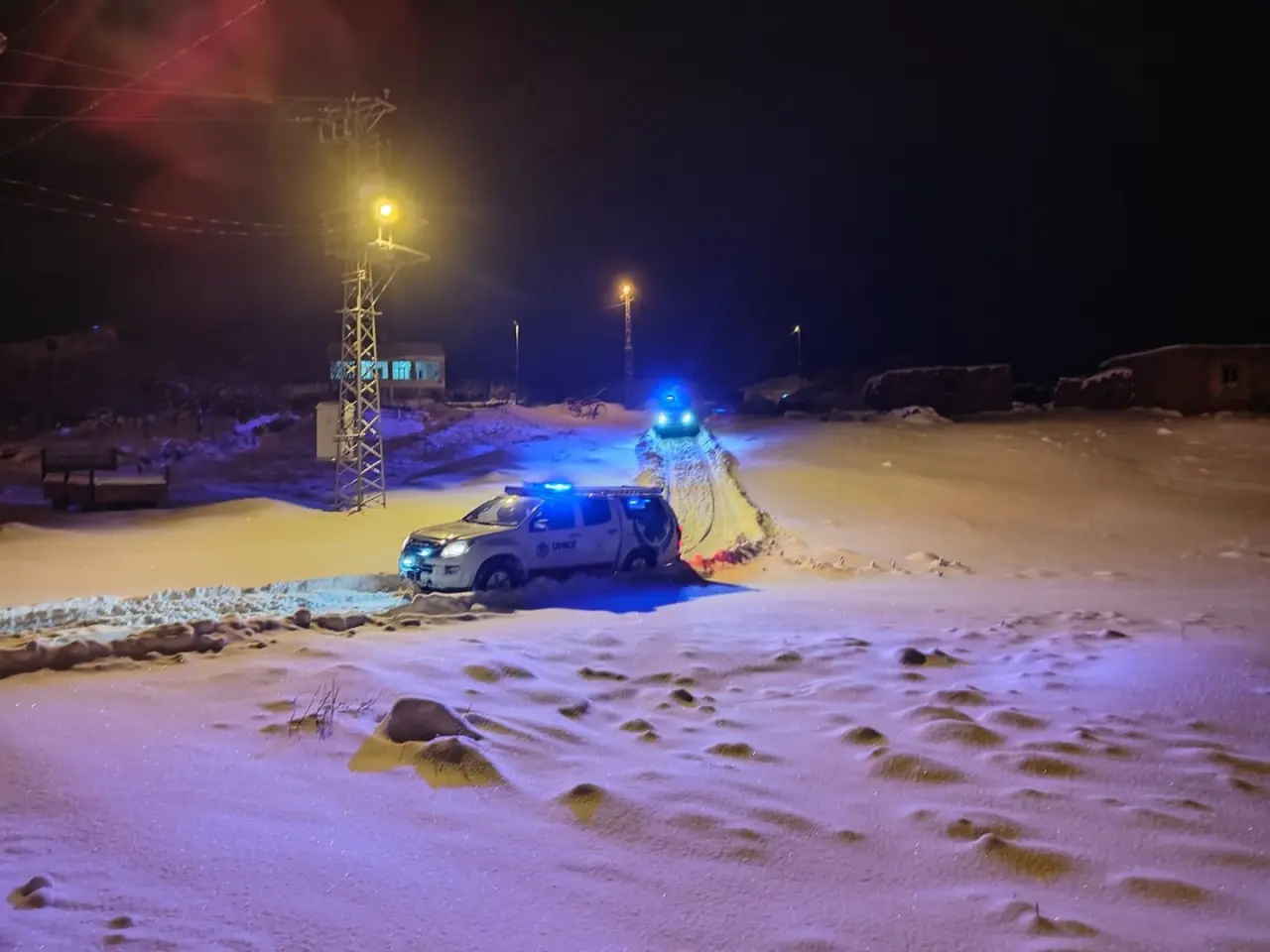 Yoğun kar yağışı ve engebeli arazi nedeniyle 112 ekipleri mezraya ulaşmakta zorlandı. Bunun üzerine paletli ambulans ve UMKE ekipleri devreye girdi.