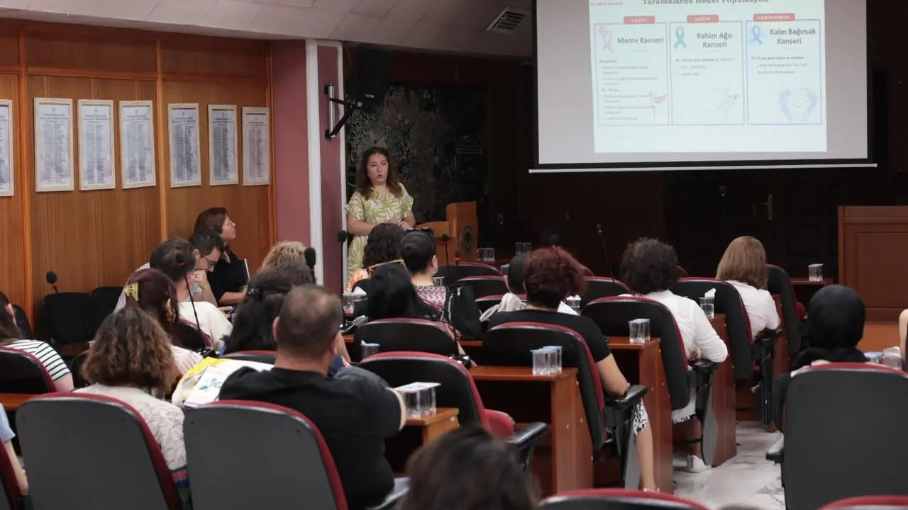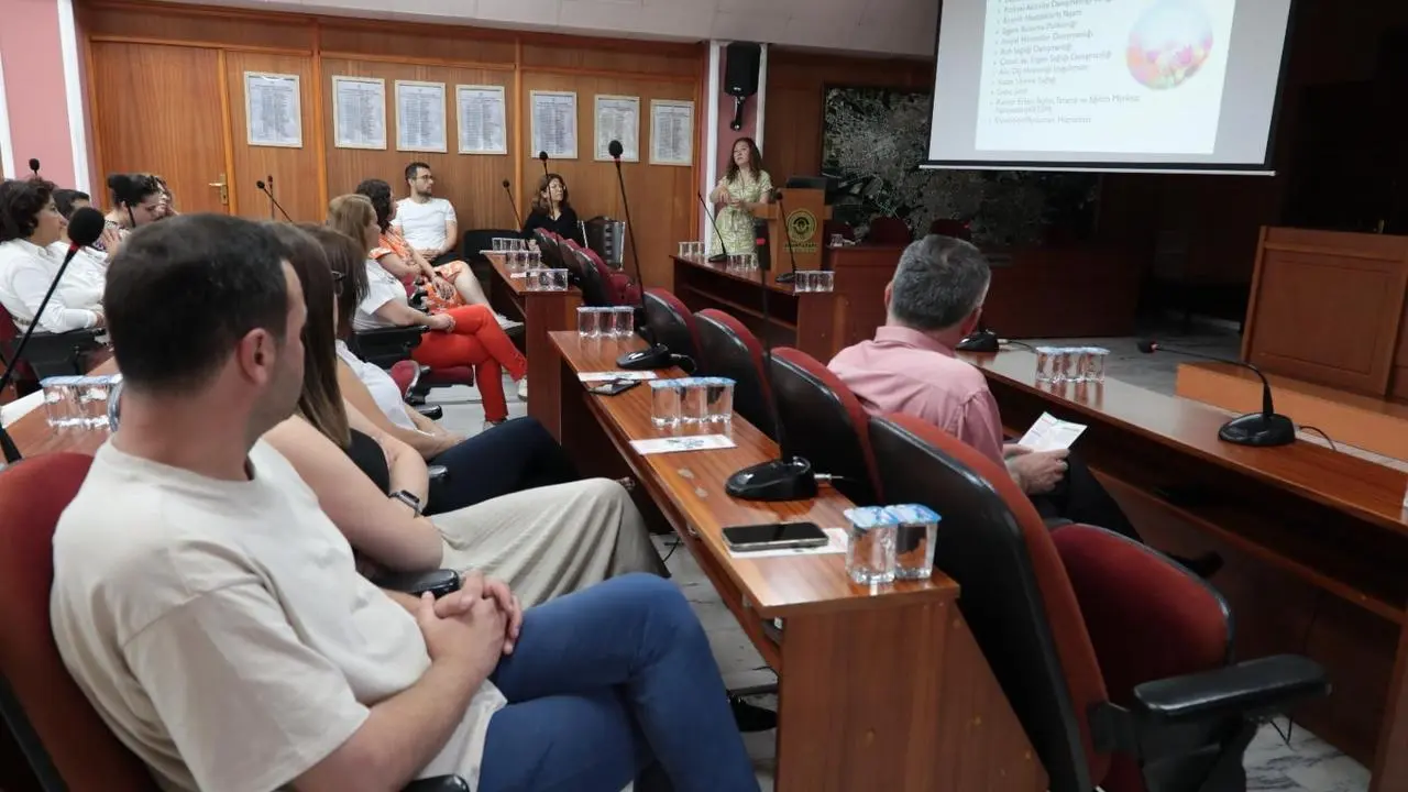 Belediye Meclis Salonu'nda düzenlenen eğitimde sağlıklı yaşam konuları ele alındı. Program kapsamında beslenme, egzersiz ve kanser taramaları hakkında bilgiler aktarıldı.