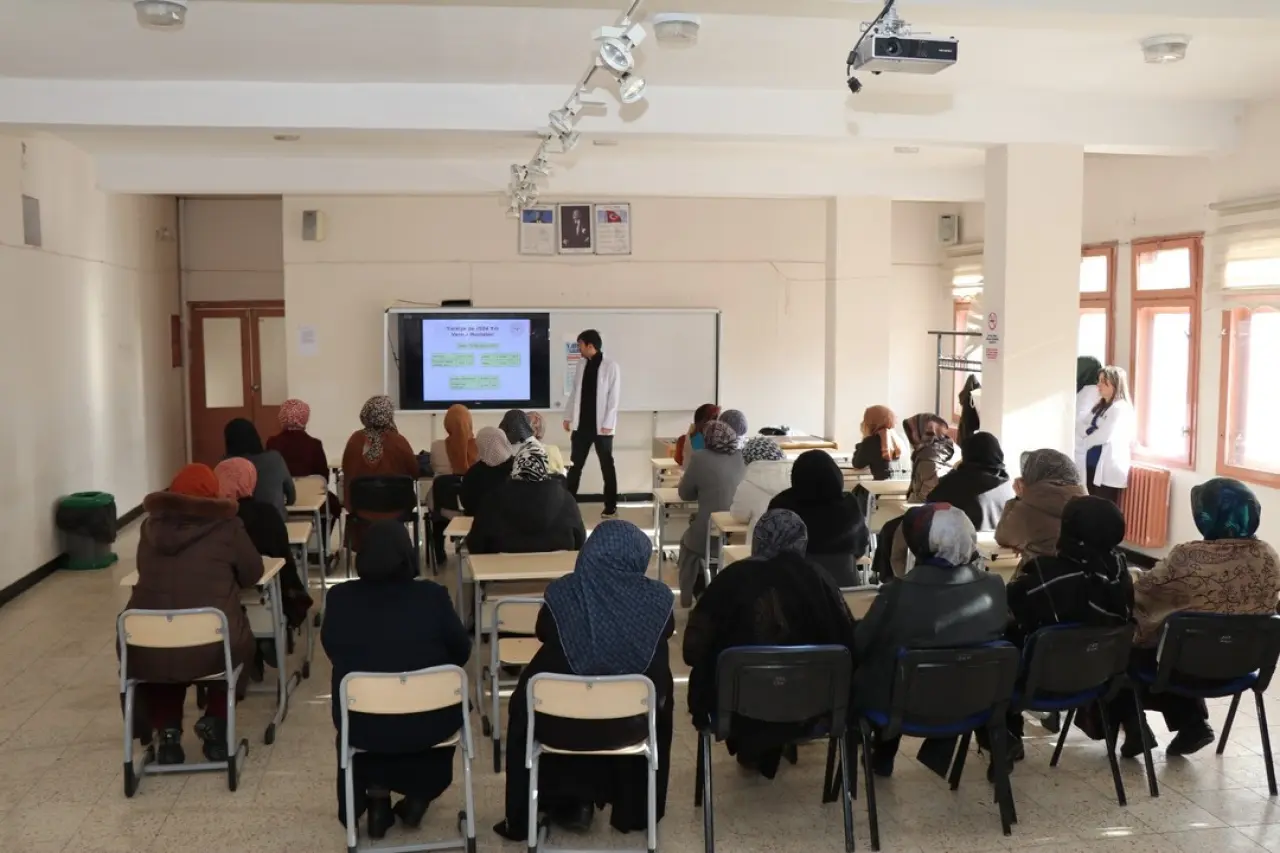 Erzurum’un Oltu ilçesinde Verem Eğitimi ve Farkındalık Haftası kapsamında bilgilendirme çalışmaları devam ediyor. Oltu İlçe Sağlık Müdürlüğü tarafından Halk Eğitim Merkezi kursiyerlerine verem hastalığı hakkında eğitim verildi.