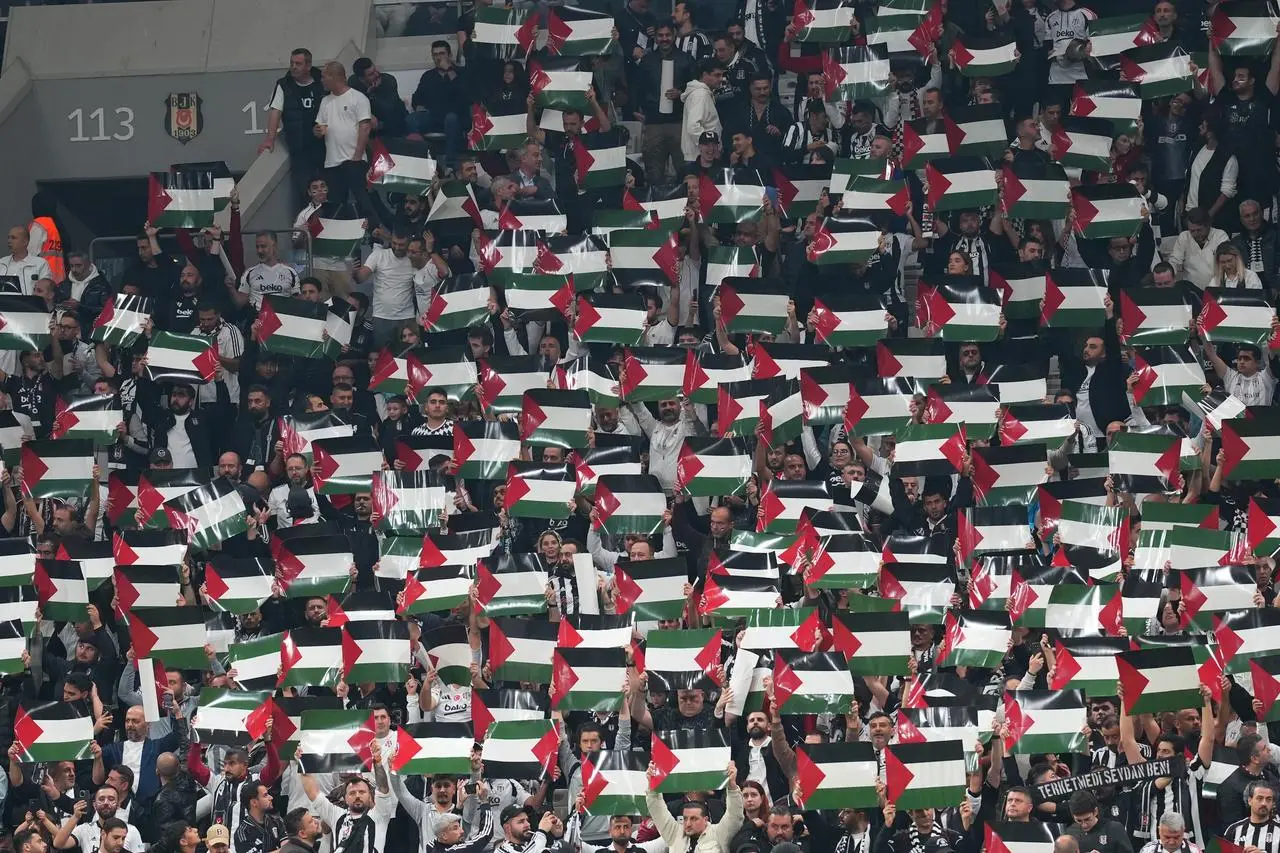 Tribünlerde eski yıldız Ricardo Quaresma maçı izledi. Taraftarlar, Filistin'e destek mesajları verdi.