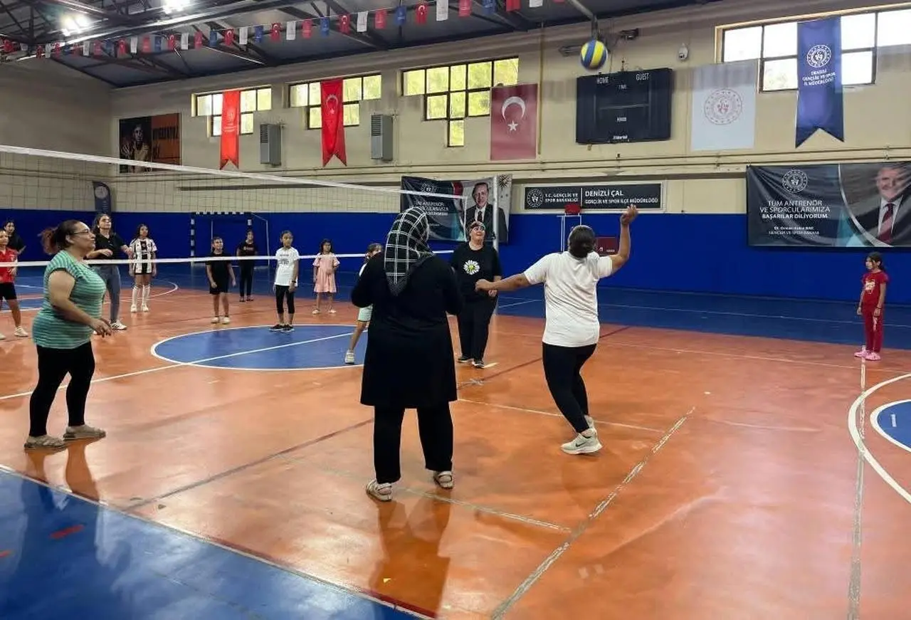 Çal Kapalı Spor Salonu'nda gerçekleşen etkinlikte voleybol, tenis ve dans gibi branşlarda eğlenceli aktiviteler yapıldı. Katılımcılar hem spor yaptı hem de aile bağlarını güçlendirdi.