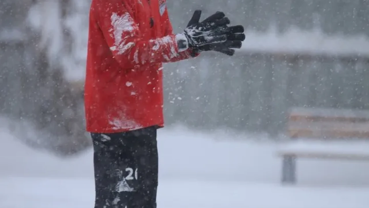 Bordo-beyazlı ekip, 23 Ocak'taki kritik mücadele öncesi antrenmanlarını sürdürüyor. Kar yağışına rağmen tesislerde çalışmalarını aksatmayan takım, teknik ekip gözetiminde sahaya çıktı.