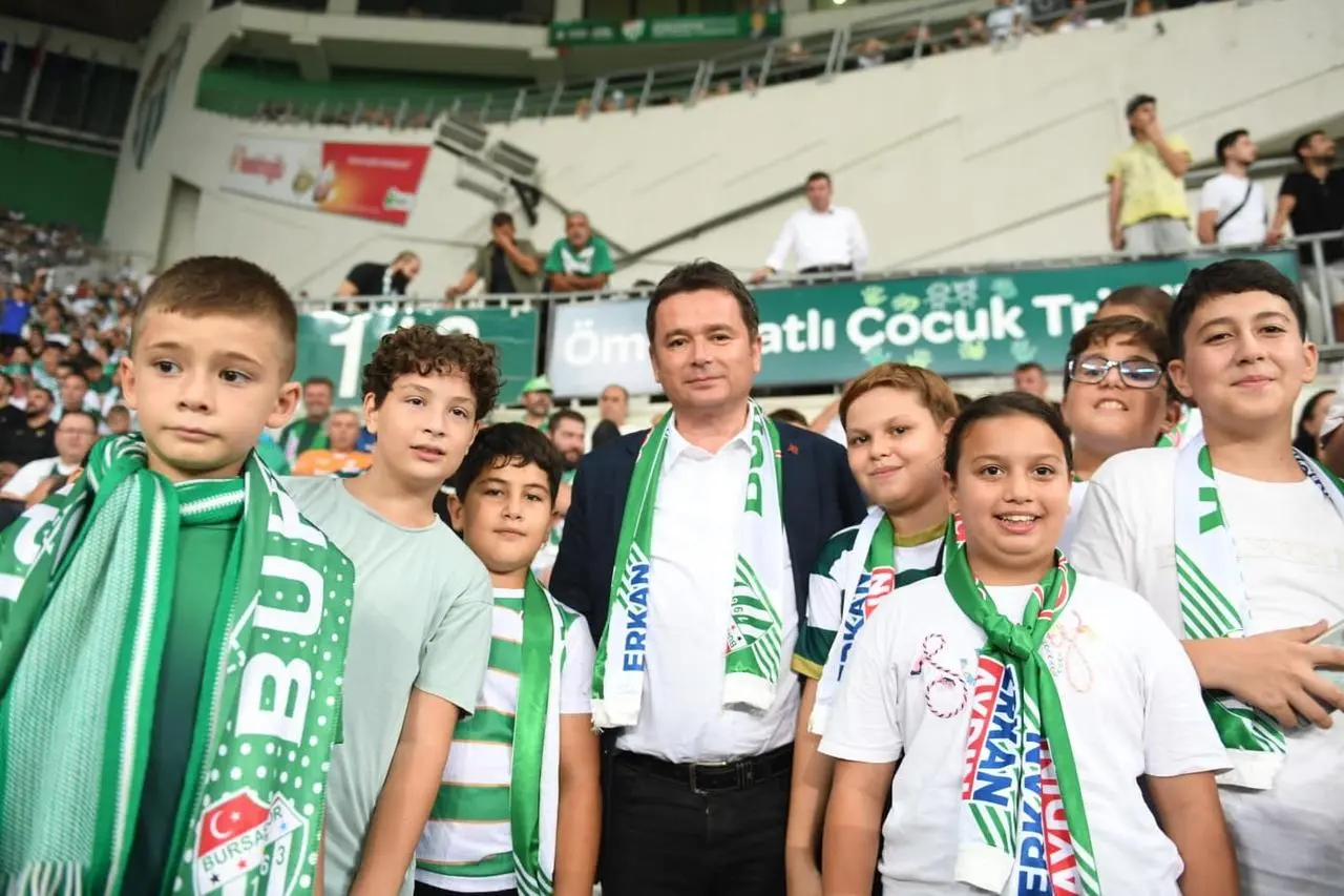 Osmangazi Belediye Başkanı Erkan Aydın, Bursaspor maçını ilk kez izleyen çocukları stadyuma götürdü.
