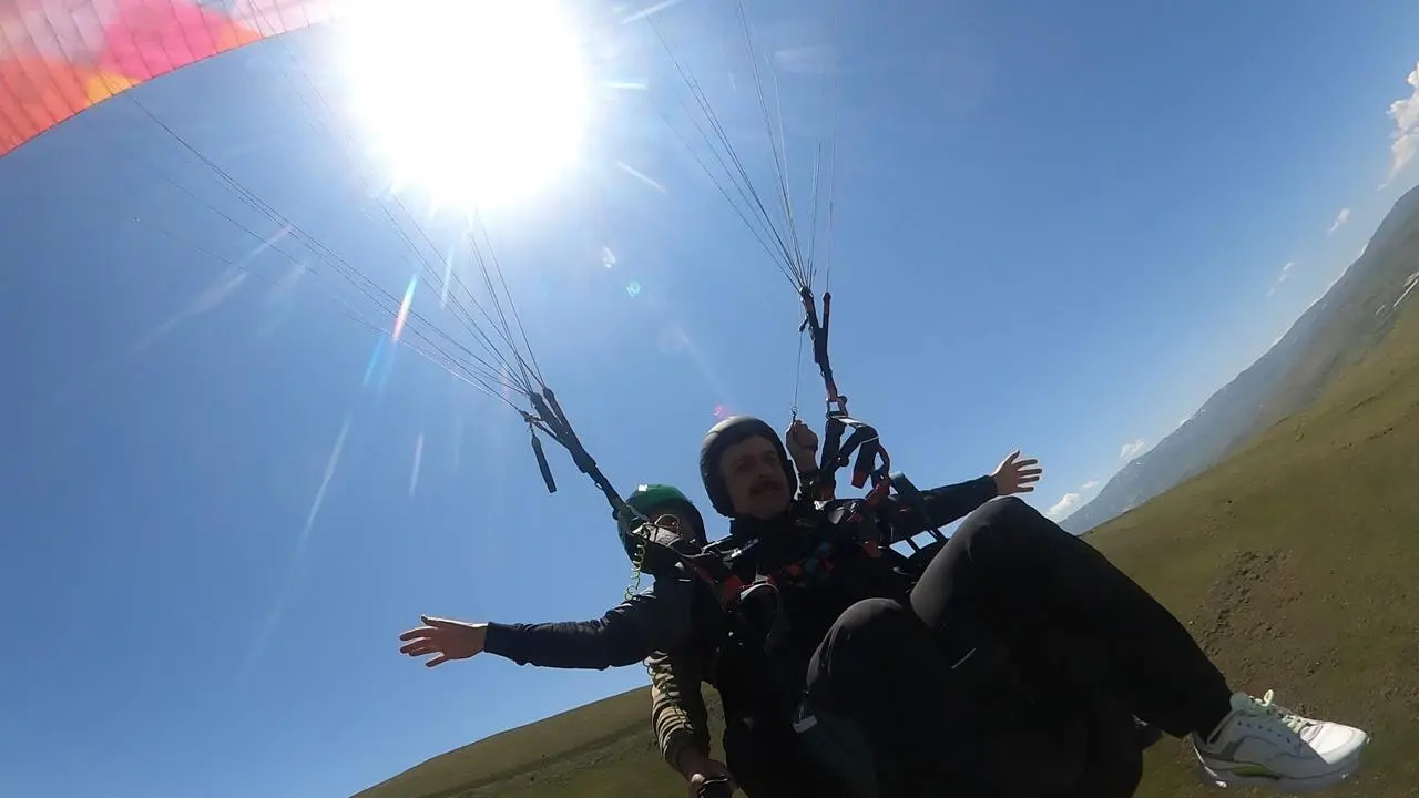 Çoban Dede Tabyası'ndan başlayan uçuş, pilotun rehberliğinde güvenle tamamlandı. Vali Çiftçi, yükseklik korkusunu bu deneyimle yendiğini ifade etti.