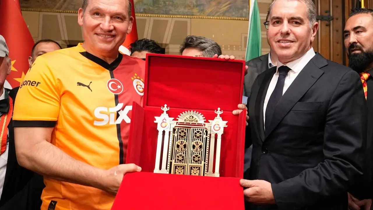 Galatasaray Genel Sekreteri, belediye başkanına özel bir plaket verdi. Brüksel Başkonsolosu Onur Sevim'e de anı plaketi takdim edildi.