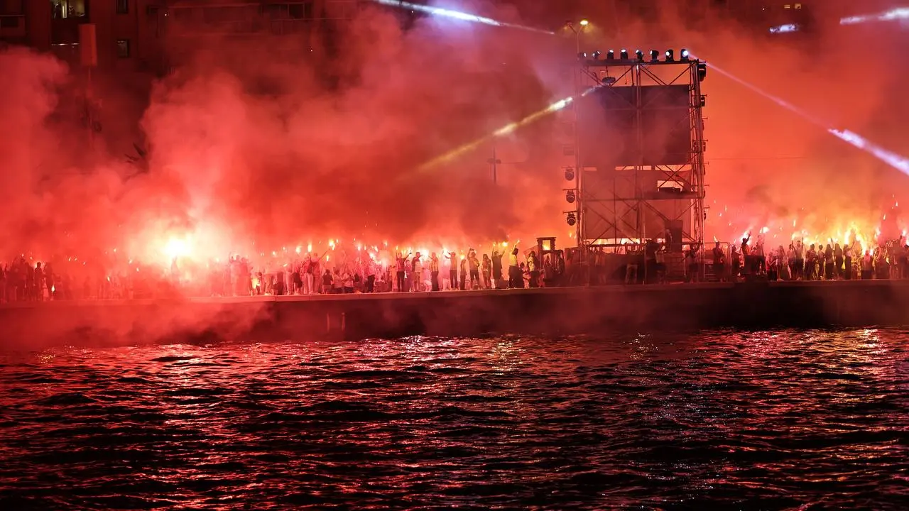 Havai fişek gösterisi ve lazer şovu izleyenleri mest etti. Taraftarlar söyledikleri bestelerle kutlamaları şölene çevirdi.