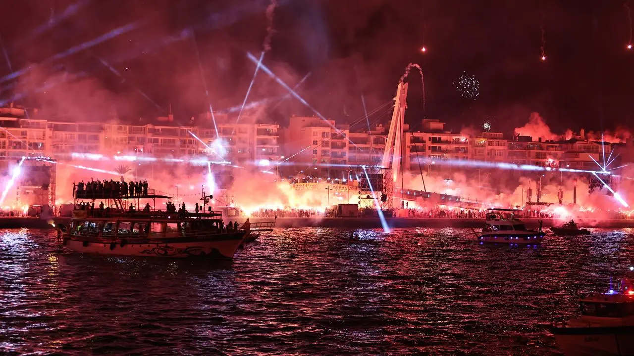 Saat 22.00'de Susuzdede Parkı'ndan atılan işaret fişeğiyle meşale şovu başladı. Binlerce taraftar ellerindeki meşalelerle sahili aydınlattı.
