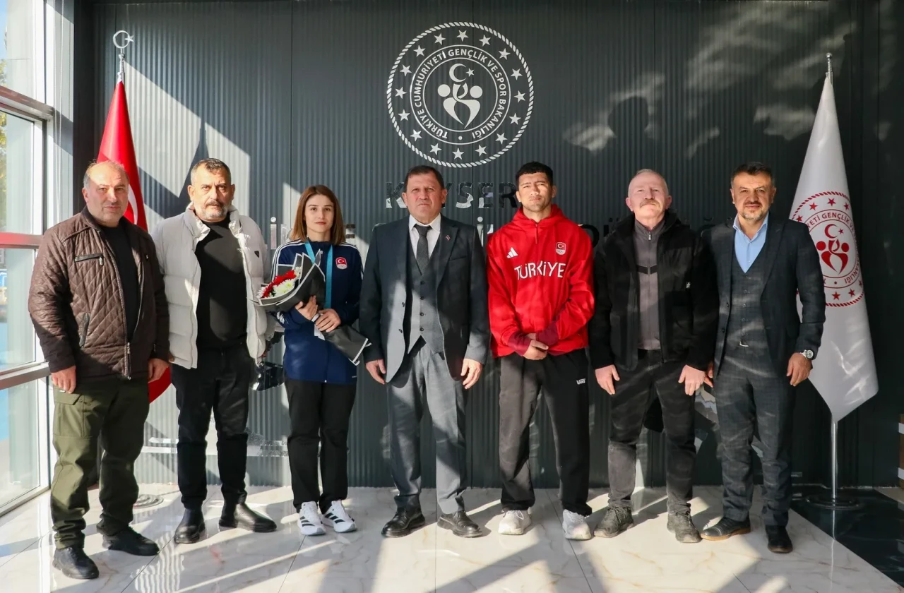 Kayseri Gençlik ve Spor İl Müdürlüğü önünde düzenlenen törende sporcular çiçeklerle karşılandı. Gençlik ve Spor İl Müdürü Ali İhsan Kabakcı, sporculara başarılarından dolayı teşekkür etti.
