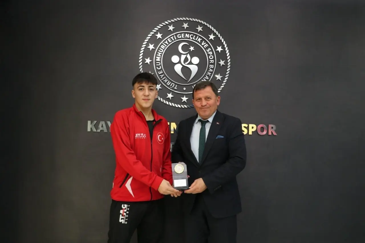 Kayseri Gençlik ve Spor İl Müdürü Ali İhsan Kabakcı, milli sporcu Kenan Eren Kahraman'ı makamında ağırladı. Kahraman, Romanya’da düzenlenen şampiyonada elde ettiği başarıyla büyük takdir topladı.