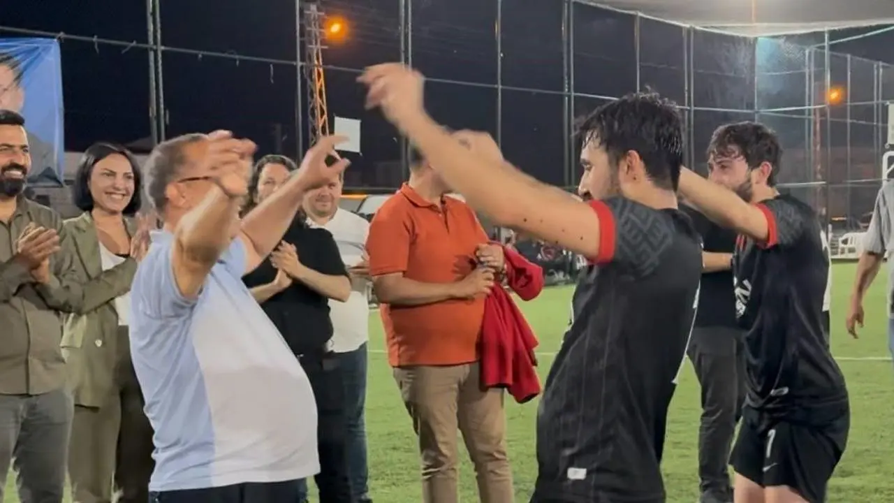 Cumhuriyet Mahallesi'nin 1-0'lık galibiyetiyle sona eren maçta muhtar Mustafa Türksev sahaya indi. Şampiyonluğu göbek atarak kutlayan muhtar, birlik beraberlik mesajı verdi.